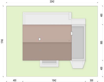 Graficzne opracowanie rzutów poglądowych widocznych na karcie projektu zostało wykonane przez Extradom.pl. Prezentowane przez Extradom.pl wizualizacje wykonane zostały przez autora projektu i należy poczytywać je jedynie za przykład i propozycję wykończenia, wizję architektoniczną autora projektu. Ostateczne wykończenie budynku może nastąpić na wiele sposobów. Szczegółowe rozwiązania zastosowane w oferowanej dokumentacji - w tym również ilość, lokalizacje i wygląd okien, drzwi, kominów - mogą w niewielkim stopniu różnić się od prezentowanej wizualizacji budynku.