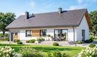 Graficzne opracowanie rzutów poglądowych widocznych na karcie projektu zostało wykonane przez Extradom.pl. Prezentowane przez Extradom.pl wizualizacje wykonane zostały przez autora projektu i należy poczytywać je jedynie za przykład i propozycję wykończenia, wizję architektoniczną autora projektu. Ostateczne wykończenie budynku może nastąpić na wiele sposobów. Szczegółowe rozwiązania zastosowane w oferowanej dokumentacji - w tym również ilość, lokalizacje i wygląd okien, drzwi, kominów - mogą w niewielkim stopniu różnić się od prezentowanej wizualizacji budynku.