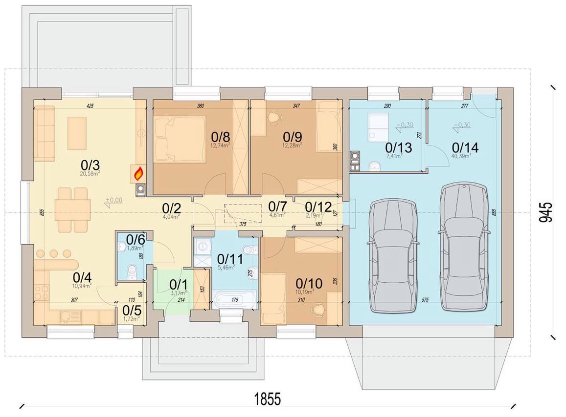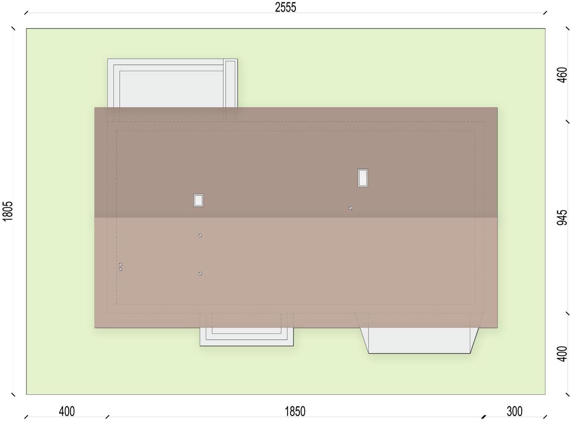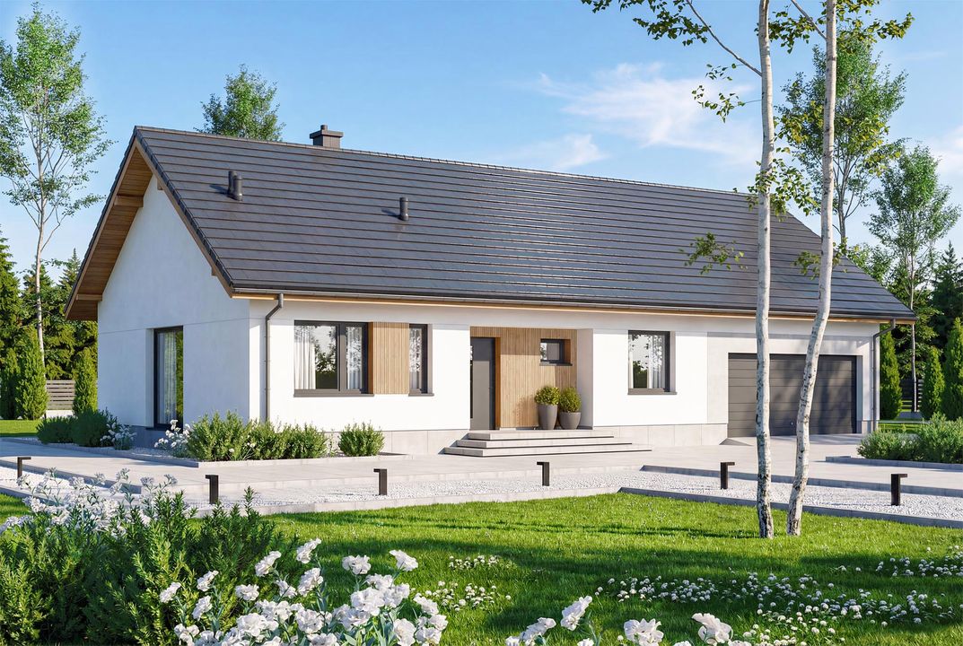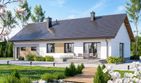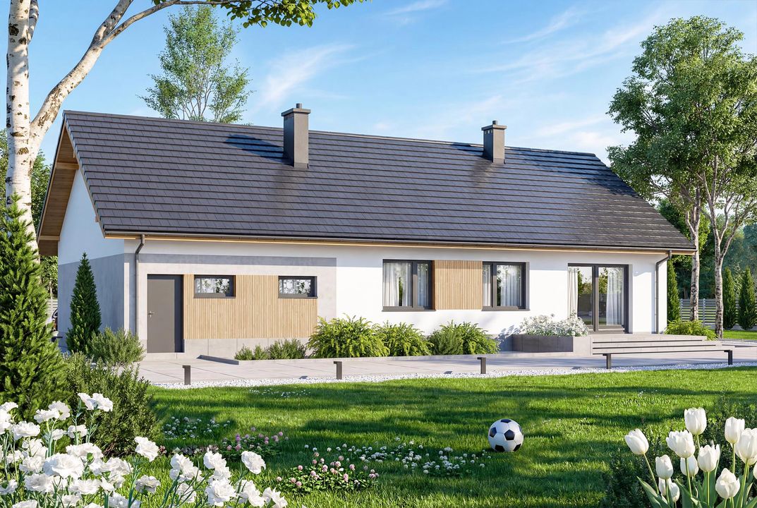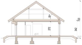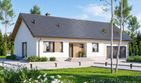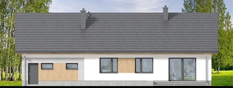 Graficzne opracowanie rzutów poglądowych widocznych na karcie projektu zostało wykonane przez Extradom.pl. Prezentowane przez Extradom.pl wizualizacje wykonane zostały przez autora projektu i należy poczytywać je jedynie za przykład i propozycję wykończenia, wizję architektoniczną autora projektu. Ostateczne wykończenie budynku może nastąpić na wiele sposobów. Szczegółowe rozwiązania zastosowane w oferowanej dokumentacji - w tym również ilość, lokalizacje i wygląd okien, drzwi, kominów - mogą w niewielkim stopniu różnić się od prezentowanej wizualizacji budynku.