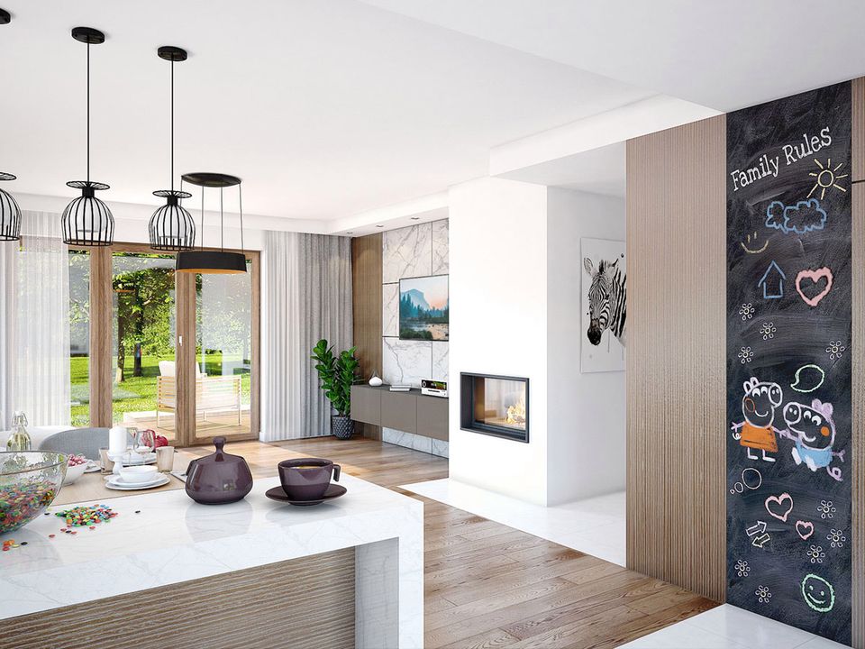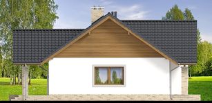 Graficzne opracowanie rzutów poglądowych widocznych na karcie projektu zostało wykonane przez Extradom.pl. Prezentowane przez Extradom.pl wizualizacje wykonane zostały przez autora projektu i należy poczytywać je jedynie za przykład i propozycję wykończenia, wizję architektoniczną autora projektu. Ostateczne wykończenie budynku może nastąpić na wiele sposobów. Szczegółowe rozwiązania zastosowane w oferowanej dokumentacji - w tym również ilość, lokalizacje i wygląd okien, drzwi, kominów - mogą w niewielkim stopniu różnić się od prezentowanej wizualizacji budynku.