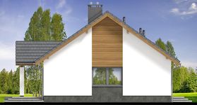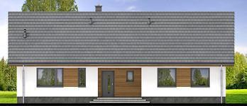 Graficzne opracowanie rzutów poglądowych widocznych na karcie projektu zostało wykonane przez Extradom.pl. Prezentowane przez Extradom.pl wizualizacje wykonane zostały przez autora projektu i należy poczytywać je jedynie za przykład i propozycję wykończenia, wizję architektoniczną autora projektu. Ostateczne wykończenie budynku może nastąpić na wiele sposobów. Szczegółowe rozwiązania zastosowane w oferowanej dokumentacji - w tym również ilość, lokalizacje i wygląd okien, drzwi, kominów - mogą w niewielkim stopniu różnić się od prezentowanej wizualizacji budynku.