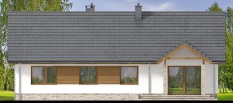 Graficzne opracowanie rzutów poglądowych widocznych na karcie projektu zostało wykonane przez Extradom.pl. Prezentowane przez Extradom.pl wizualizacje wykonane zostały przez autora projektu i należy poczytywać je jedynie za przykład i propozycję wykończenia, wizję architektoniczną autora projektu. Ostateczne wykończenie budynku może nastąpić na wiele sposobów. Szczegółowe rozwiązania zastosowane w oferowanej dokumentacji - w tym również ilość, lokalizacje i wygląd okien, drzwi, kominów - mogą w niewielkim stopniu różnić się od prezentowanej wizualizacji budynku.
