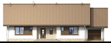 Graficzne opracowanie rzutów poglądowych widocznych na karcie projektu zostało wykonane przez Extradom.pl. Prezentowane przez Extradom.pl wizualizacje wykonane zostały przez autora projektu i należy poczytywać je jedynie za przykład i propozycję wykończenia, wizję architektoniczną autora projektu. Ostateczne wykończenie budynku może nastąpić na wiele sposobów. Szczegółowe rozwiązania zastosowane w oferowanej dokumentacji - w tym również ilość, lokalizacje i wygląd okien, drzwi, kominów - mogą w niewielkim stopniu różnić się od prezentowanej wizualizacji budynku.