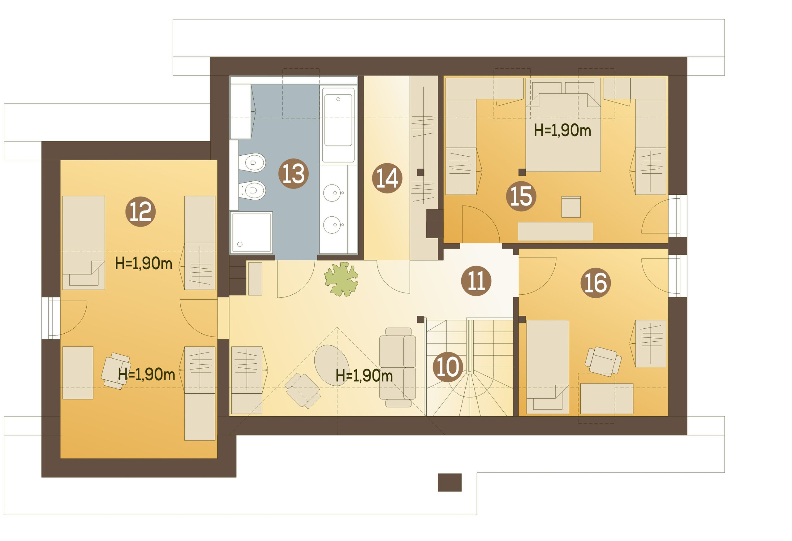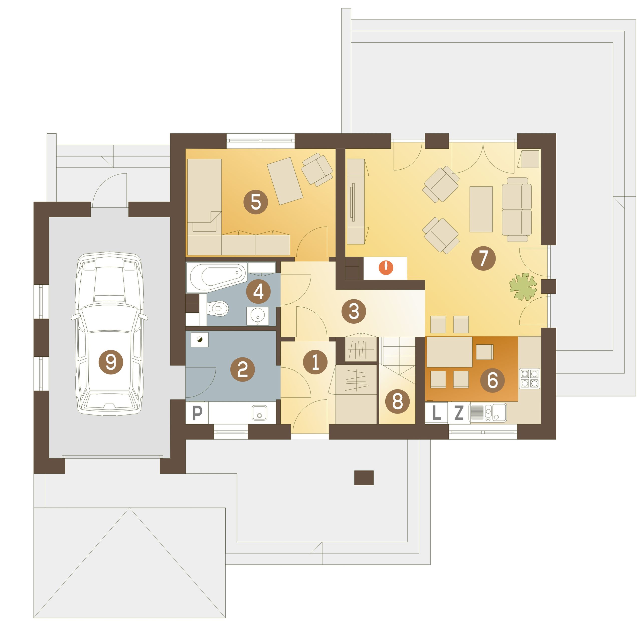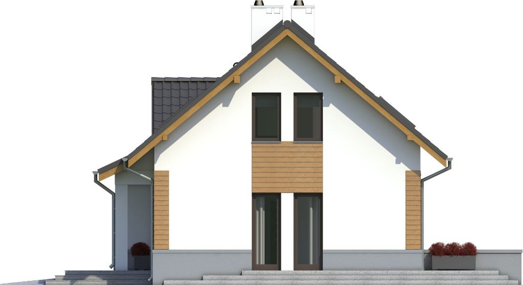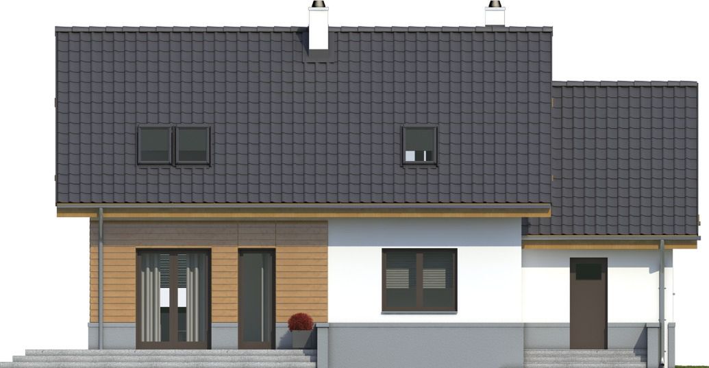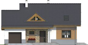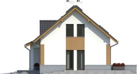 Graficzne opracowanie rzutów poglądowych widocznych na karcie projektu zostało wykonane przez Extradom.pl. Prezentowane przez Extradom.pl wizualizacje wykonane zostały przez autora projektu i należy poczytywać je jedynie za przykład i propozycję wykończenia, wizję architektoniczną autora projektu. Ostateczne wykończenie budynku może nastąpić na wiele sposobów. Szczegółowe rozwiązania zastosowane w oferowanej dokumentacji - w tym również ilość, lokalizacje i wygląd okien, drzwi, kominów - mogą w niewielkim stopniu różnić się od prezentowanej wizualizacji budynku.