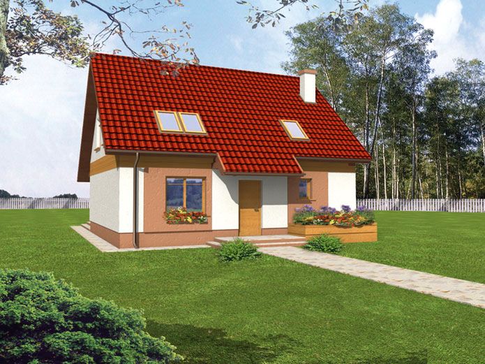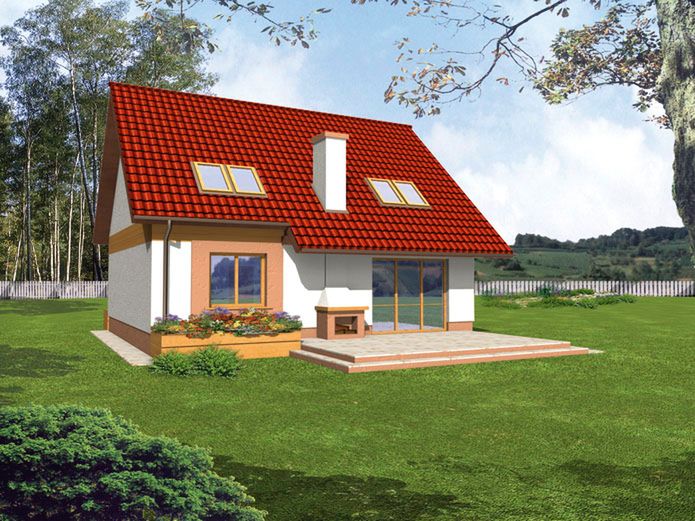 Graficzne opracowanie rzutów poglądowych widocznych na karcie projektu zostało wykonane przez Extradom.pl. Prezentowane przez Extradom.pl wizualizacje wykonane zostały przez autora projektu i należy poczytywać je jedynie za przykład i propozycję wykończenia, wizję architektoniczną autora projektu. Ostateczne wykończenie budynku może nastąpić na wiele sposobów. Szczegółowe rozwiązania zastosowane w oferowanej dokumentacji - w tym również ilość, lokalizacje i wygląd okien, drzwi, kominów - mogą w niewielkim stopniu różnić się od prezentowanej wizualizacji budynku.
