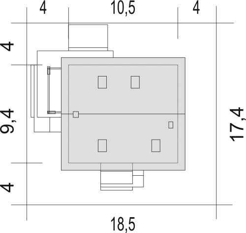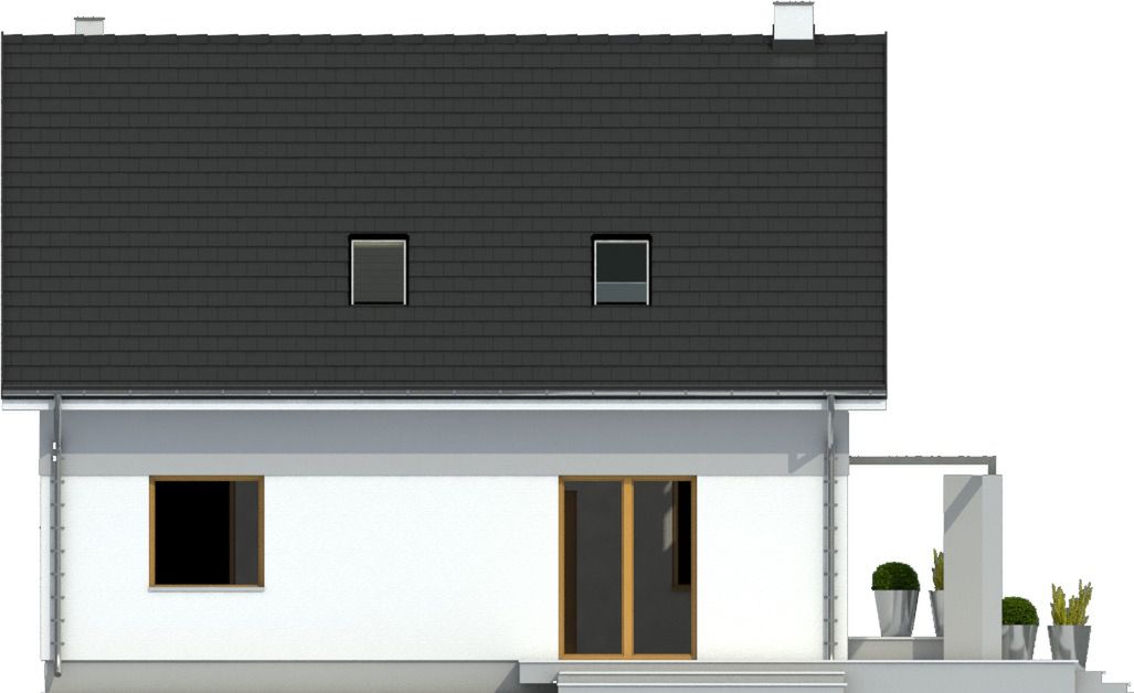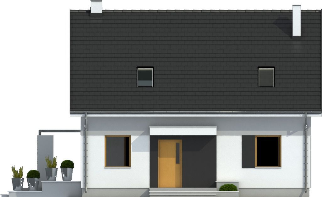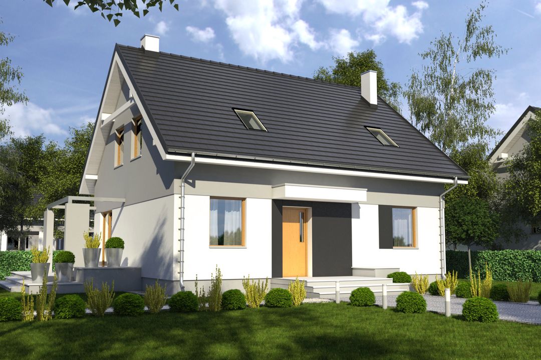 Graficzne opracowanie rzutów poglądowych widocznych na karcie projektu zostało wykonane przez Extradom.pl. Prezentowane przez Extradom.pl wizualizacje wykonane zostały przez autora projektu i należy poczytywać je jedynie za przykład i propozycję wykończenia, wizję architektoniczną autora projektu. Ostateczne wykończenie budynku może nastąpić na wiele sposobów. Szczegółowe rozwiązania zastosowane w oferowanej dokumentacji - w tym również ilość, lokalizacje i wygląd okien, drzwi, kominów - mogą w niewielkim stopniu różnić się od prezentowanej wizualizacji budynku.