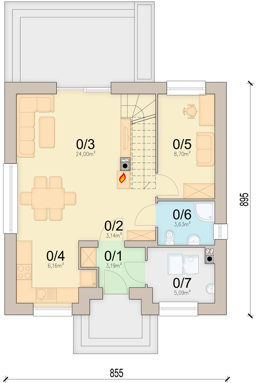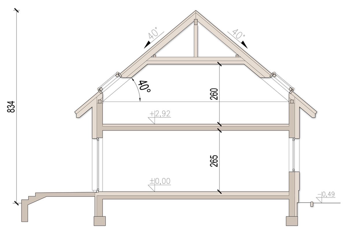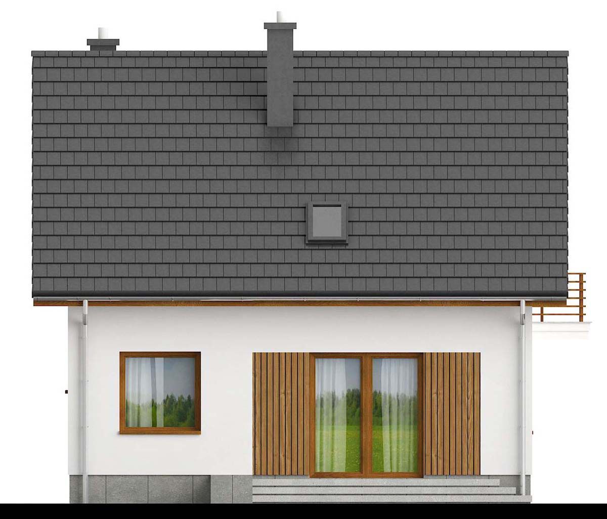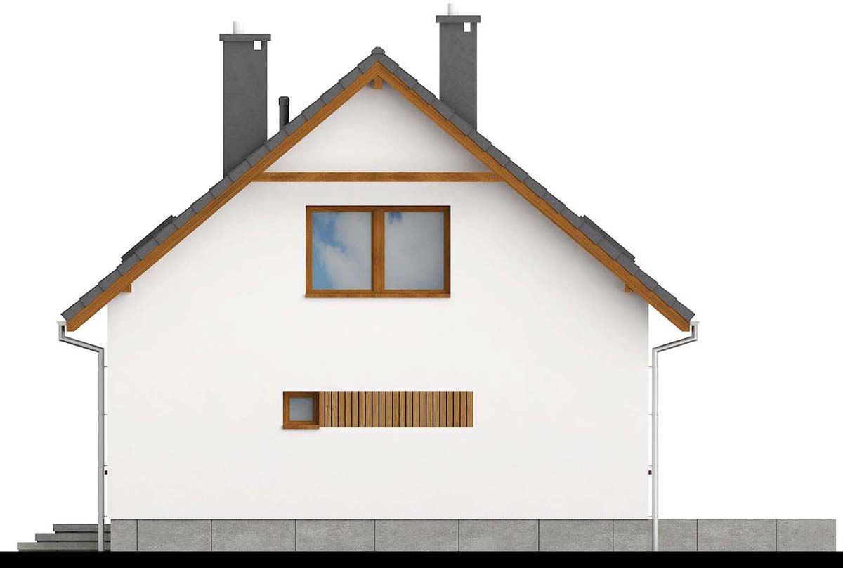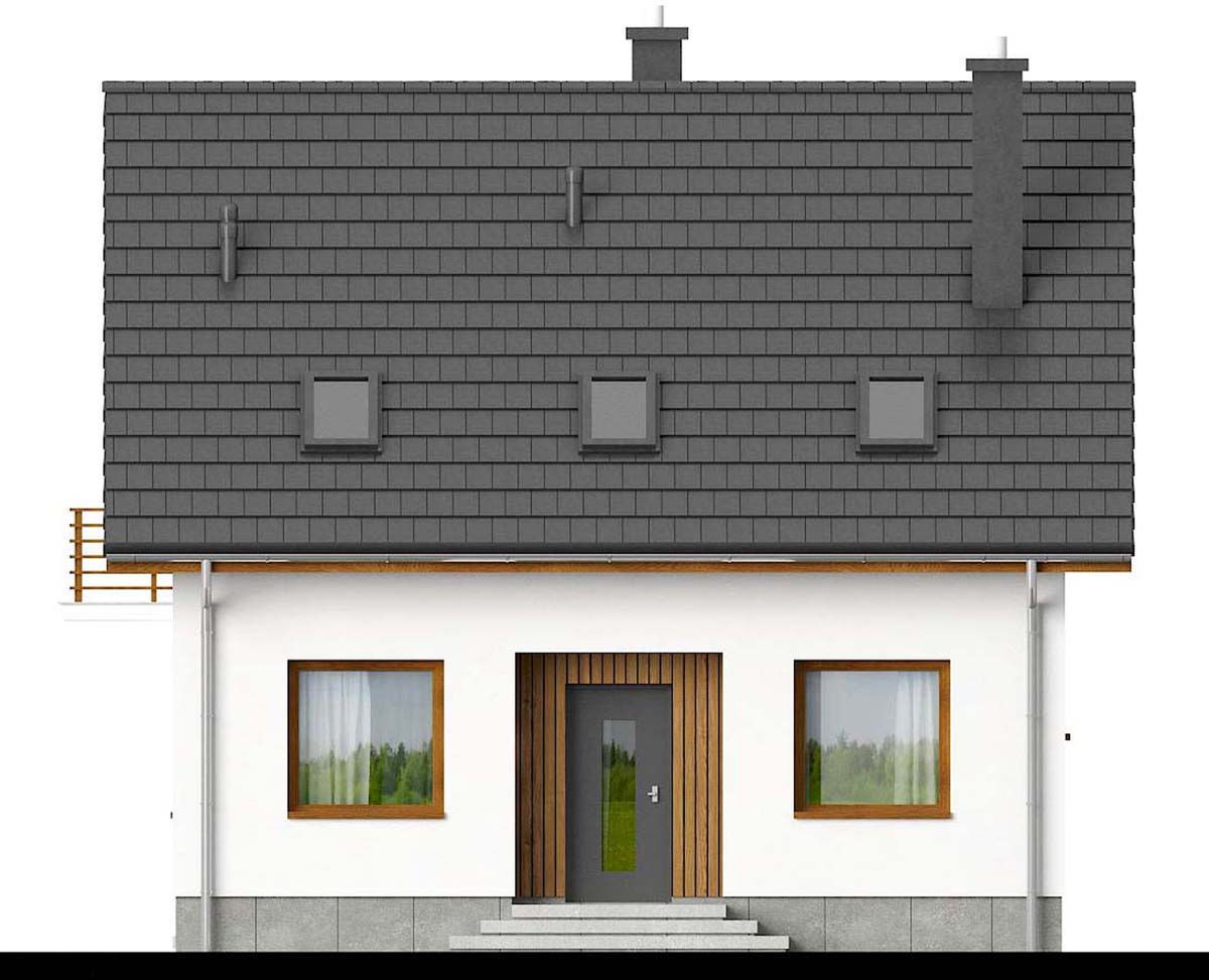 Graficzne opracowanie rzutów poglądowych widocznych na karcie projektu zostało wykonane przez Extradom.pl. Prezentowane przez Extradom.pl wizualizacje wykonane zostały przez autora projektu i należy poczytywać je jedynie za przykład i propozycję wykończenia, wizję architektoniczną autora projektu. Ostateczne wykończenie budynku może nastąpić na wiele sposobów. Szczegółowe rozwiązania zastosowane w oferowanej dokumentacji - w tym również ilość, lokalizacje i wygląd okien, drzwi, kominów - mogą w niewielkim stopniu różnić się od prezentowanej wizualizacji budynku.