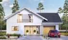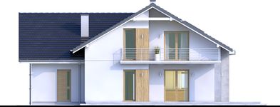 Graficzne opracowanie rzutów poglądowych widocznych na karcie projektu zostało wykonane przez Extradom.pl. Prezentowane przez Extradom.pl wizualizacje wykonane zostały przez autora projektu i należy poczytywać je jedynie za przykład i propozycję wykończenia, wizję architektoniczną autora projektu. Ostateczne wykończenie budynku może nastąpić na wiele sposobów. Szczegółowe rozwiązania zastosowane w oferowanej dokumentacji - w tym również ilość, lokalizacje i wygląd okien, drzwi, kominów - mogą w niewielkim stopniu różnić się od prezentowanej wizualizacji budynku.