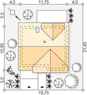Ściany: 2-warstwowe - pustak ceramiczny Porotherm 25 Profi + styropian. Stropy: żelbetowe, wylewane. Dach: dachówka ceramiczna Koramic Orea 9, kąt nachylenia 38°. Ogrzewanie: gazowe.