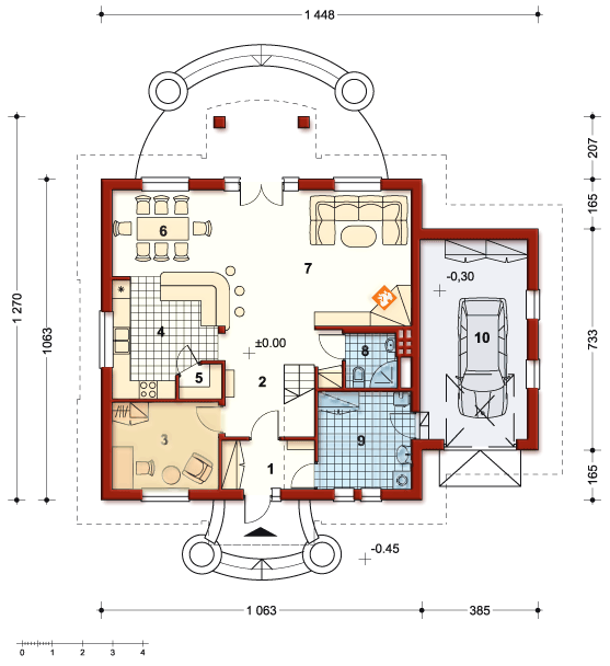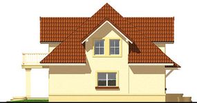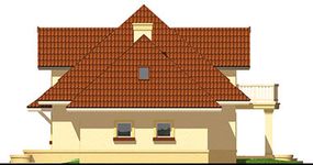 Graficzne opracowanie rzutów poglądowych widocznych na karcie projektu zostało wykonane przez Extradom.pl. Prezentowane przez Extradom.pl wizualizacje wykonane zostały przez autora projektu i należy poczytywać je jedynie za przykład i propozycję wykończenia, wizję architektoniczną autora projektu. Ostateczne wykończenie budynku może nastąpić na wiele sposobów. Szczegółowe rozwiązania zastosowane w oferowanej dokumentacji - w tym również ilość, lokalizacje i wygląd okien, drzwi, kominów - mogą w niewielkim stopniu różnić się od prezentowanej wizualizacji budynku.