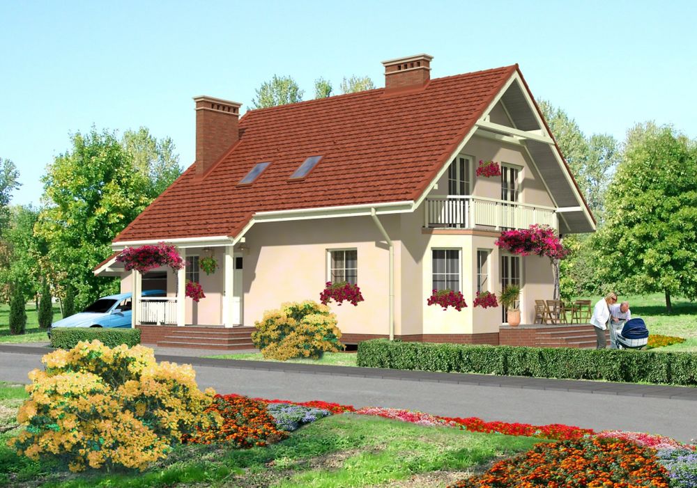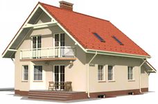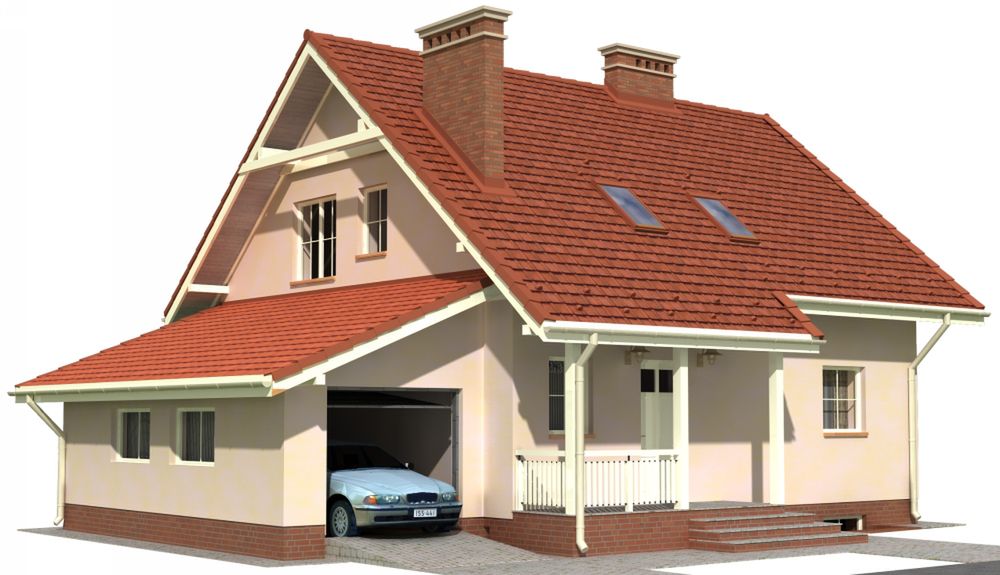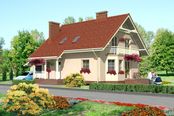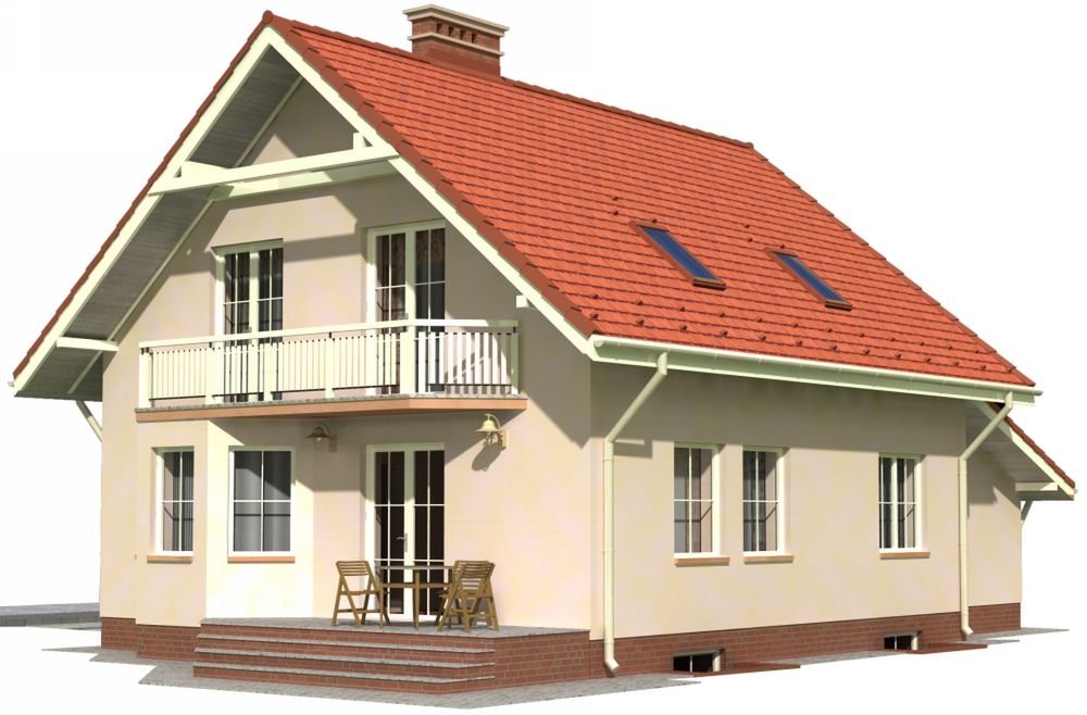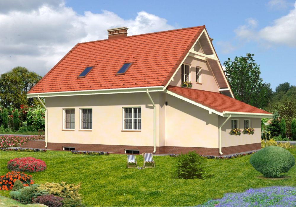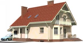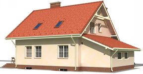 Graficzne opracowanie rzutów poglądowych widocznych na karcie projektu zostało wykonane przez Extradom.pl. Prezentowane przez Extradom.pl wizualizacje wykonane zostały przez autora projektu i należy poczytywać je jedynie za przykład i propozycję wykończenia, wizję architektoniczną autora projektu. Ostateczne wykończenie budynku może nastąpić na wiele sposobów. Szczegółowe rozwiązania zastosowane w oferowanej dokumentacji - w tym również ilość, lokalizacje i wygląd okien, drzwi, kominów - mogą w niewielkim stopniu różnić się od prezentowanej wizualizacji budynku.