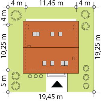 Graficzne opracowanie rzutów poglądowych widocznych na karcie projektu zostało wykonane przez Extradom.pl. Prezentowane przez Extradom.pl wizualizacje wykonane zostały przez autora projektu i należy poczytywać je jedynie za przykład i propozycję wykończenia, wizję architektoniczną autora projektu. Ostateczne wykończenie budynku może nastąpić na wiele sposobów. Szczegółowe rozwiązania zastosowane w oferowanej dokumentacji - w tym również ilość, lokalizacje i wygląd okien, drzwi, kominów - mogą w niewielkim stopniu różnić się od prezentowanej wizualizacji budynku.
