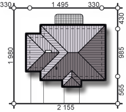 Graficzne opracowanie rzutów poglądowych widocznych na karcie projektu zostało wykonane przez Extradom.pl. Prezentowane przez Extradom.pl wizualizacje wykonane zostały przez autora projektu i należy poczytywać je jedynie za przykład i propozycję wykończenia, wizję architektoniczną autora projektu. Ostateczne wykończenie budynku może nastąpić na wiele sposobów. Szczegółowe rozwiązania zastosowane w oferowanej dokumentacji - w tym również ilość, lokalizacje i wygląd okien, drzwi, kominów - mogą w niewielkim stopniu różnić się od prezentowanej wizualizacji budynku.