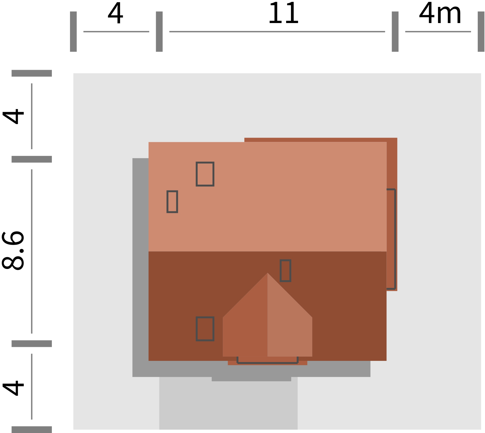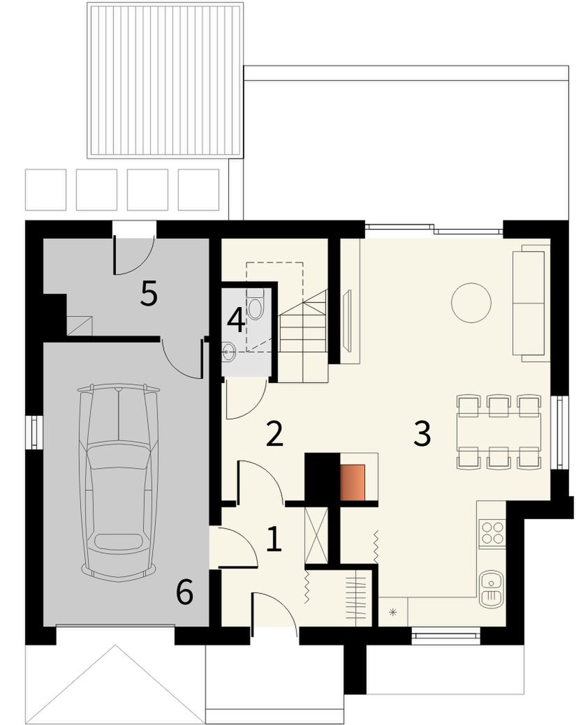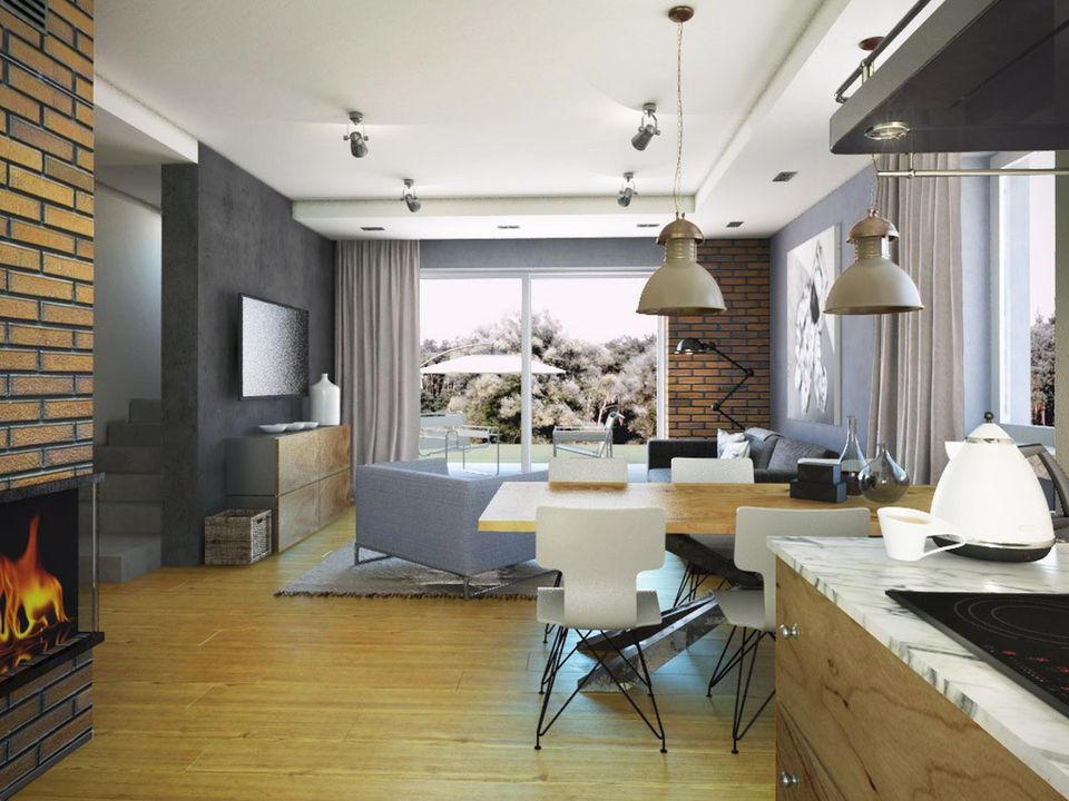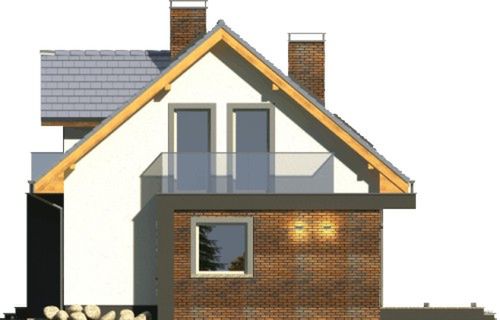 Graficzne opracowanie rzutów poglądowych widocznych na karcie projektu zostało wykonane przez Extradom.pl. Prezentowane przez Extradom.pl wizualizacje wykonane zostały przez autora projektu i należy poczytywać je jedynie za przykład i propozycję wykończenia, wizję architektoniczną autora projektu. Ostateczne wykończenie budynku może nastąpić na wiele sposobów. Szczegółowe rozwiązania zastosowane w oferowanej dokumentacji - w tym również ilość, lokalizacje i wygląd okien, drzwi, kominów - mogą w niewielkim stopniu różnić się od prezentowanej wizualizacji budynku.