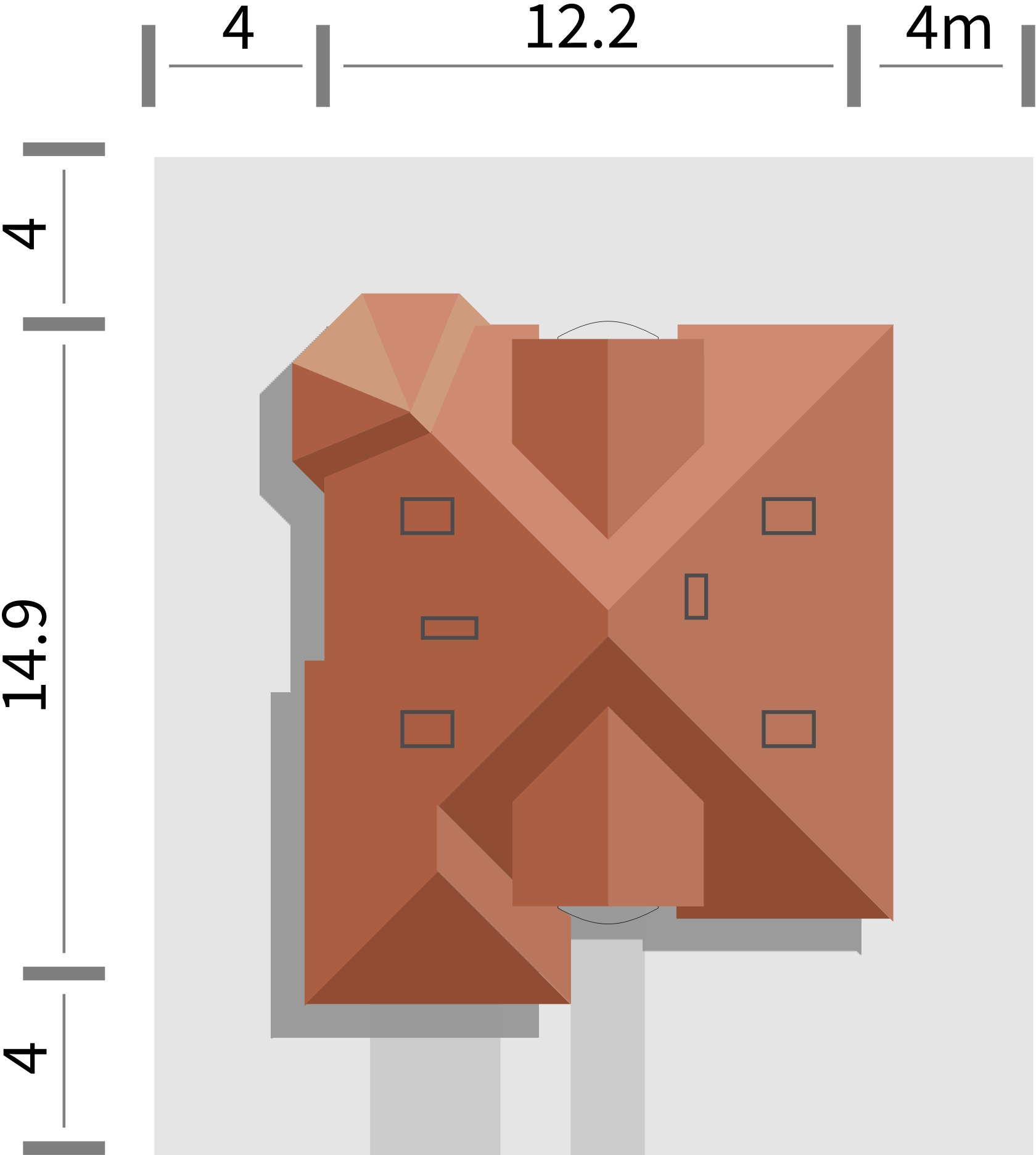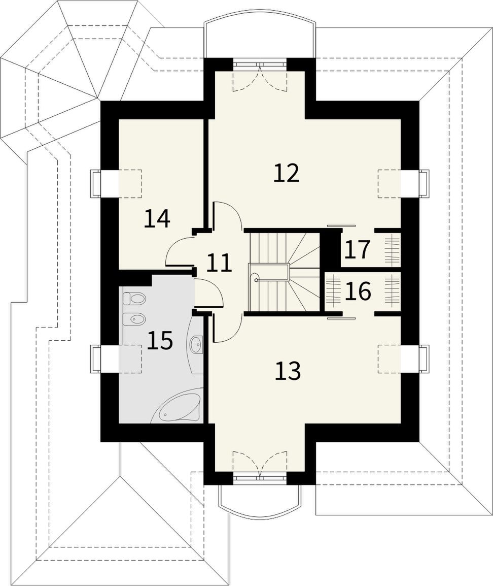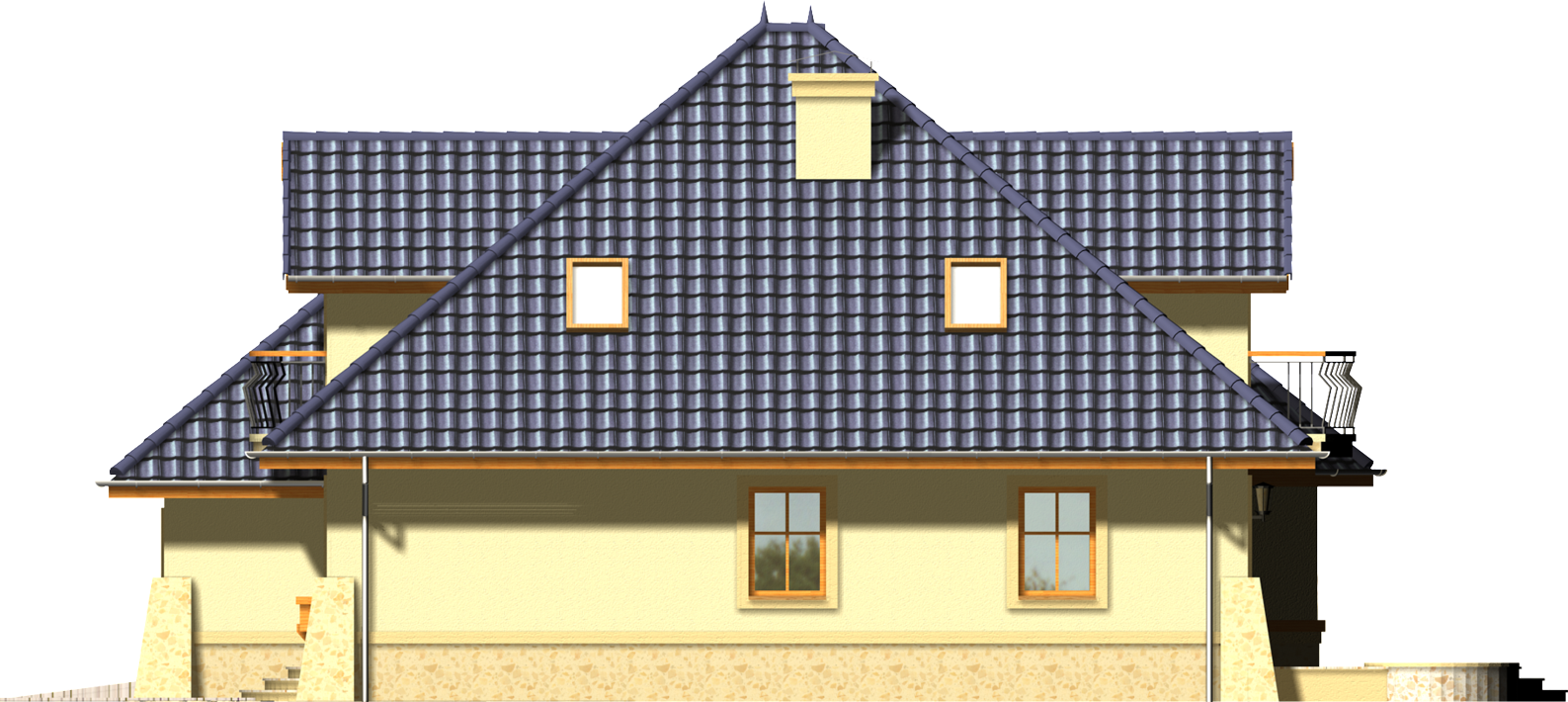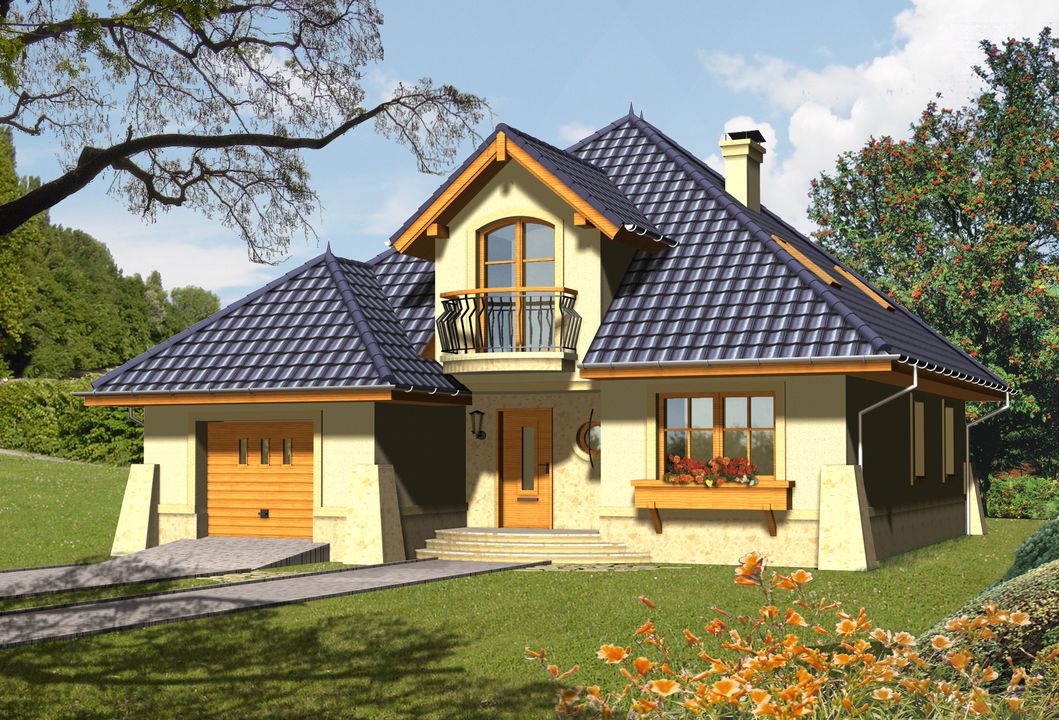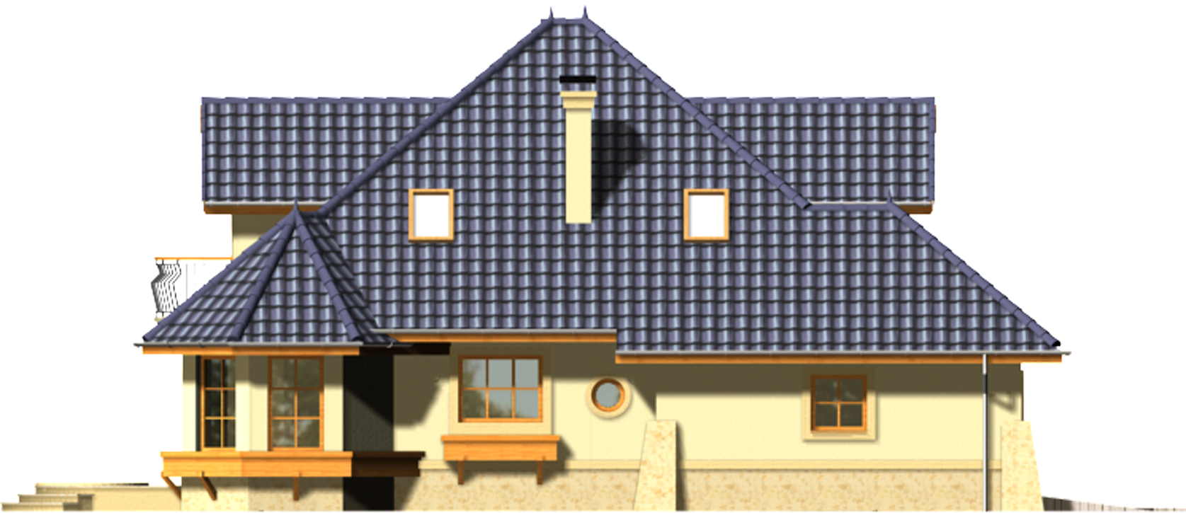 Graficzne opracowanie rzutów poglądowych widocznych na karcie projektu zostało wykonane przez Extradom.pl. Prezentowane przez Extradom.pl wizualizacje wykonane zostały przez autora projektu i należy poczytywać je jedynie za przykład i propozycję wykończenia, wizję architektoniczną autora projektu. Ostateczne wykończenie budynku może nastąpić na wiele sposobów. Szczegółowe rozwiązania zastosowane w oferowanej dokumentacji - w tym również ilość, lokalizacje i wygląd okien, drzwi, kominów - mogą w niewielkim stopniu różnić się od prezentowanej wizualizacji budynku.