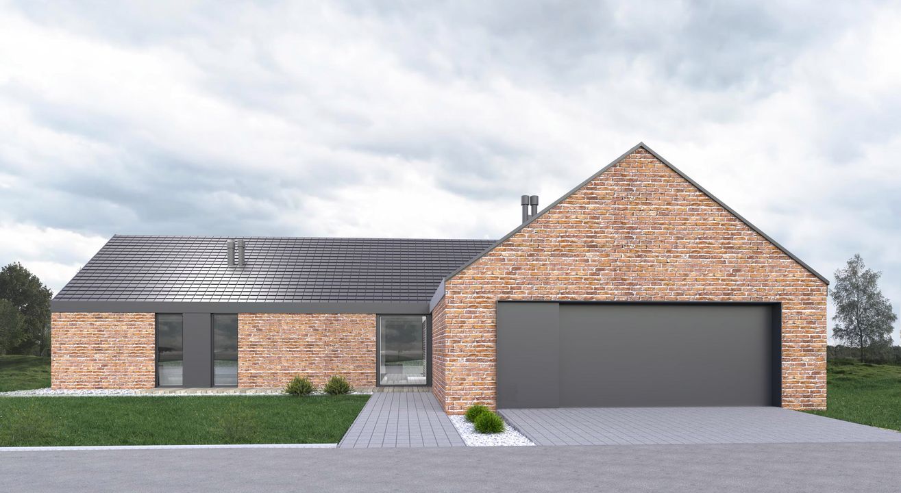 Graficzne opracowanie rzutów poglądowych widocznych na karcie projektu zostało wykonane przez Extradom.pl. Prezentowane przez Extradom.pl wizualizacje wykonane zostały przez autora projektu i należy poczytywać je jedynie za przykład i propozycję wykończenia, wizję architektoniczną autora projektu. Ostateczne wykończenie budynku może nastąpić na wiele sposobów. Szczegółowe rozwiązania zastosowane w oferowanej dokumentacji - w tym również ilość, lokalizacje i wygląd okien, drzwi, kominów - mogą w niewielkim stopniu różnić się od prezentowanej wizualizacji budynku.