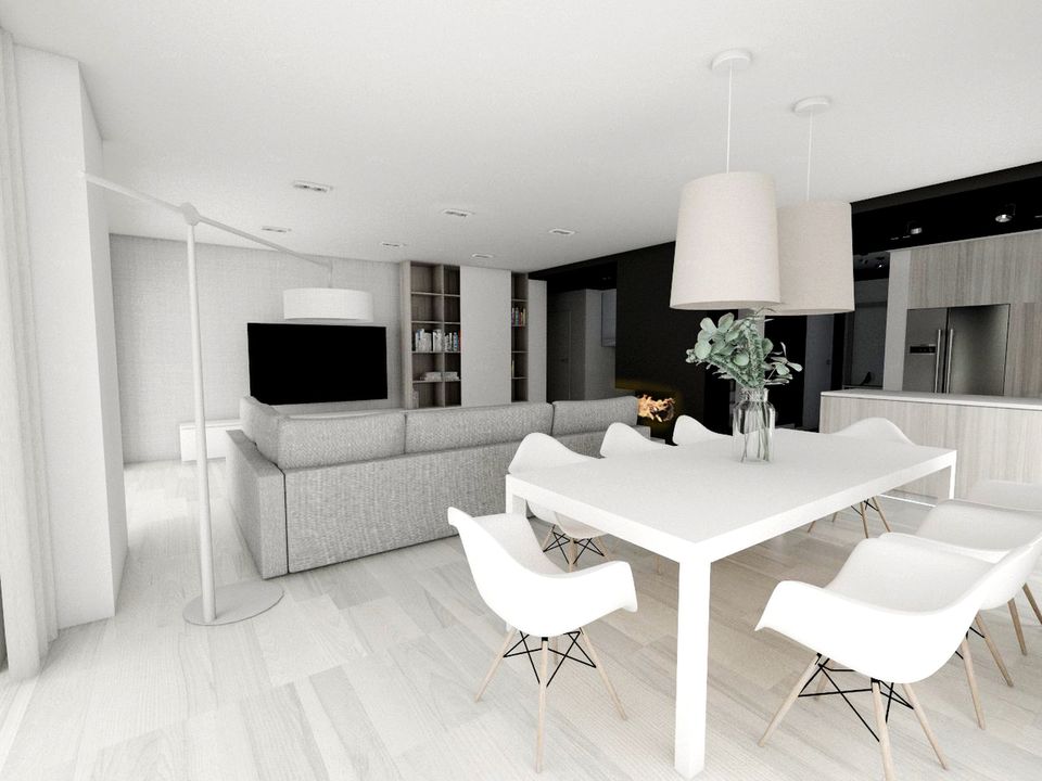 Graficzne opracowanie rzutów poglądowych widocznych na karcie projektu zostało wykonane przez Extradom.pl. Prezentowane przez Extradom.pl wizualizacje wykonane zostały przez autora projektu i należy poczytywać je jedynie za przykład i propozycję wykończenia, wizję architektoniczną autora projektu. Ostateczne wykończenie budynku może nastąpić na wiele sposobów. Szczegółowe rozwiązania zastosowane w oferowanej dokumentacji - w tym również ilość, lokalizacje i wygląd okien, drzwi, kominów - mogą w niewielkim stopniu różnić się od prezentowanej wizualizacji budynku.