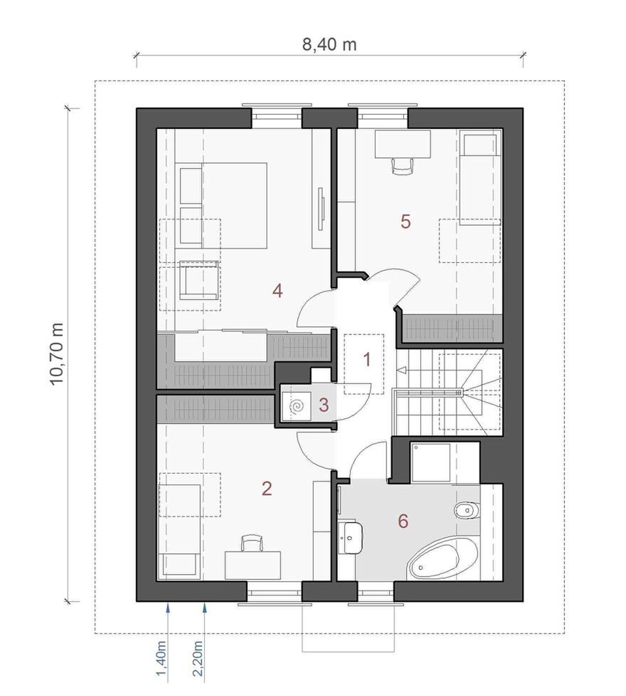 Graficzne opracowanie rzutów poglądowych widocznych na karcie projektu zostało wykonane przez Extradom.pl. Prezentowane przez Extradom.pl wizualizacje wykonane zostały przez autora projektu i należy poczytywać je jedynie za przykład i propozycję wykończenia, wizję architektoniczną autora projektu. Ostateczne wykończenie budynku może nastąpić na wiele sposobów. Szczegółowe rozwiązania zastosowane w oferowanej dokumentacji - w tym również ilość, lokalizacje i wygląd okien, drzwi, kominów - mogą w niewielkim stopniu różnić się od prezentowanej wizualizacji budynku.