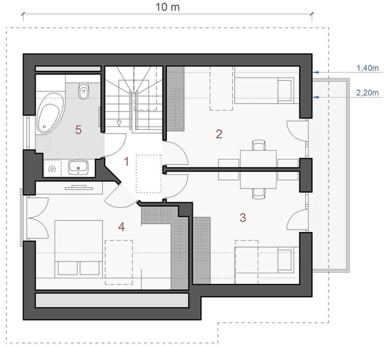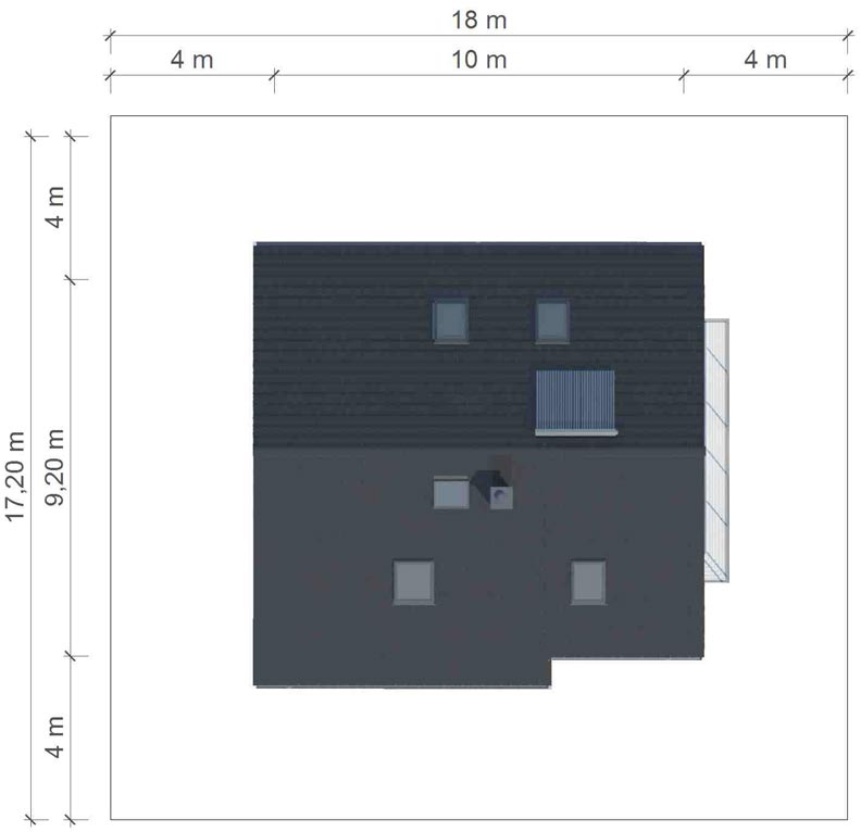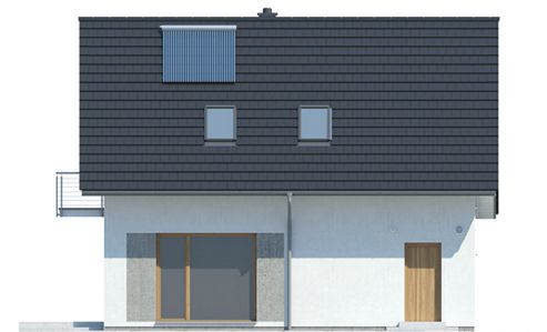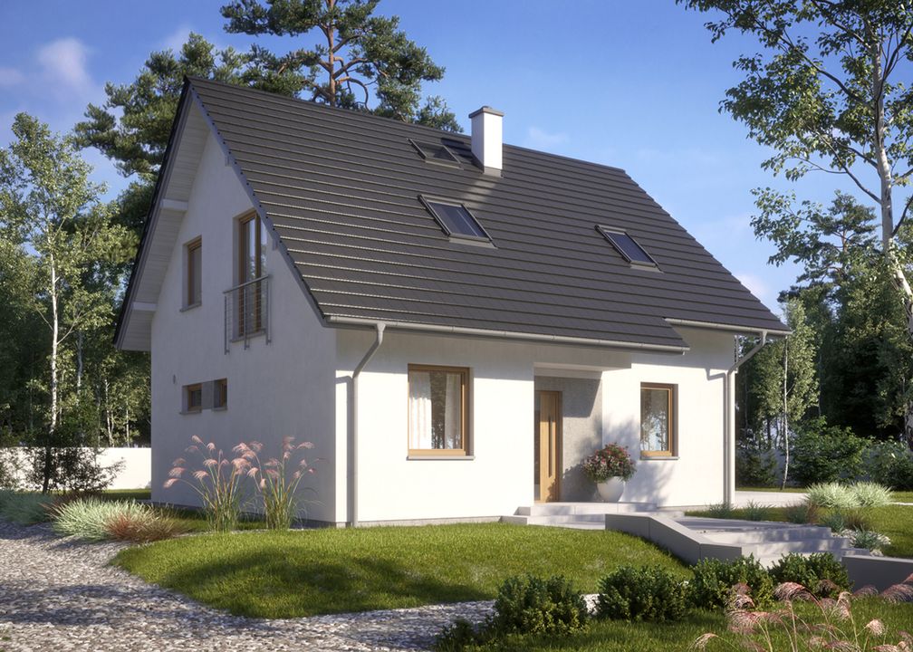 Graficzne opracowanie rzutów poglądowych widocznych na karcie projektu zostało wykonane przez Extradom.pl. Prezentowane przez Extradom.pl wizualizacje wykonane zostały przez autora projektu i należy poczytywać je jedynie za przykład i propozycję wykończenia, wizję architektoniczną autora projektu. Ostateczne wykończenie budynku może nastąpić na wiele sposobów. Szczegółowe rozwiązania zastosowane w oferowanej dokumentacji - w tym również ilość, lokalizacje i wygląd okien, drzwi, kominów - mogą w niewielkim stopniu różnić się od prezentowanej wizualizacji budynku.