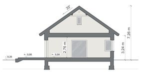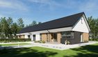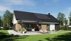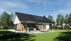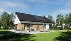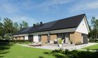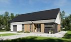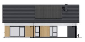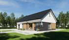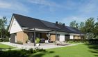 Graficzne opracowanie rzutów poglądowych widocznych na karcie projektu zostało wykonane przez Extradom.pl. Prezentowane przez Extradom.pl wizualizacje wykonane zostały przez autora projektu i należy poczytywać je jedynie za przykład i propozycję wykończenia, wizję architektoniczną autora projektu. Ostateczne wykończenie budynku może nastąpić na wiele sposobów. Szczegółowe rozwiązania zastosowane w oferowanej dokumentacji - w tym również ilość, lokalizacje i wygląd okien, drzwi, kominów - mogą w niewielkim stopniu różnić się od prezentowanej wizualizacji budynku.