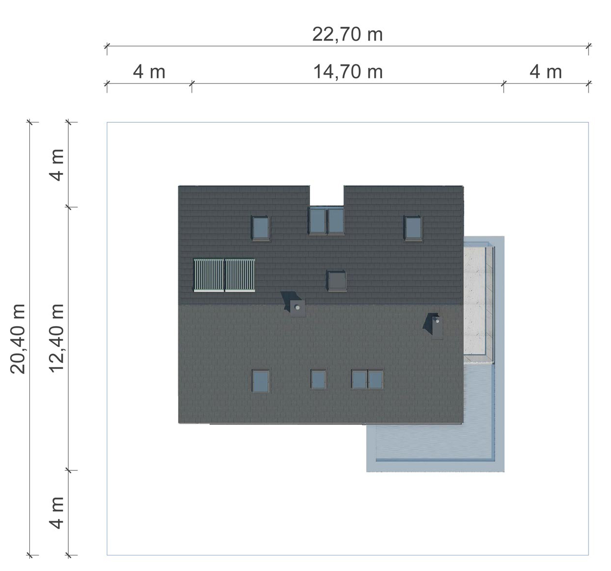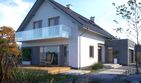 Graficzne opracowanie rzutów poglądowych widocznych na karcie projektu zostało wykonane przez Extradom.pl. Prezentowane przez Extradom.pl wizualizacje wykonane zostały przez autora projektu i należy poczytywać je jedynie za przykład i propozycję wykończenia, wizję architektoniczną autora projektu. Ostateczne wykończenie budynku może nastąpić na wiele sposobów. Szczegółowe rozwiązania zastosowane w oferowanej dokumentacji - w tym również ilość, lokalizacje i wygląd okien, drzwi, kominów - mogą w niewielkim stopniu różnić się od prezentowanej wizualizacji budynku.