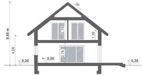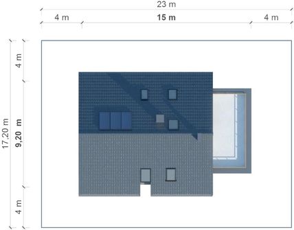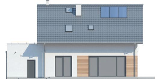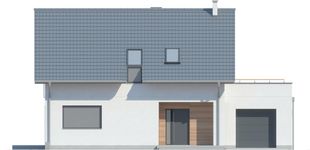 Graficzne opracowanie rzutów poglądowych widocznych na karcie projektu zostało wykonane przez Extradom.pl. Prezentowane przez Extradom.pl wizualizacje wykonane zostały przez autora projektu i należy poczytywać je jedynie za przykład i propozycję wykończenia, wizję architektoniczną autora projektu. Ostateczne wykończenie budynku może nastąpić na wiele sposobów. Szczegółowe rozwiązania zastosowane w oferowanej dokumentacji - w tym również ilość, lokalizacje i wygląd okien, drzwi, kominów - mogą w niewielkim stopniu różnić się od prezentowanej wizualizacji budynku.