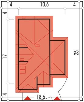 Graficzne opracowanie rzutów poglądowych widocznych na karcie projektu zostało wykonane przez Extradom.pl. Prezentowane przez Extradom.pl wizualizacje wykonane zostały przez autora projektu i należy poczytywać je jedynie za przykład i propozycję wykończenia, wizję architektoniczną autora projektu. Ostateczne wykończenie budynku może nastąpić na wiele sposobów. Szczegółowe rozwiązania zastosowane w oferowanej dokumentacji - w tym również ilość, lokalizacje i wygląd okien, drzwi, kominów - mogą w niewielkim stopniu różnić się od prezentowanej wizualizacji budynku.
