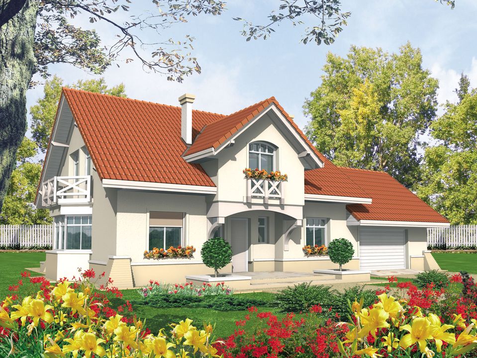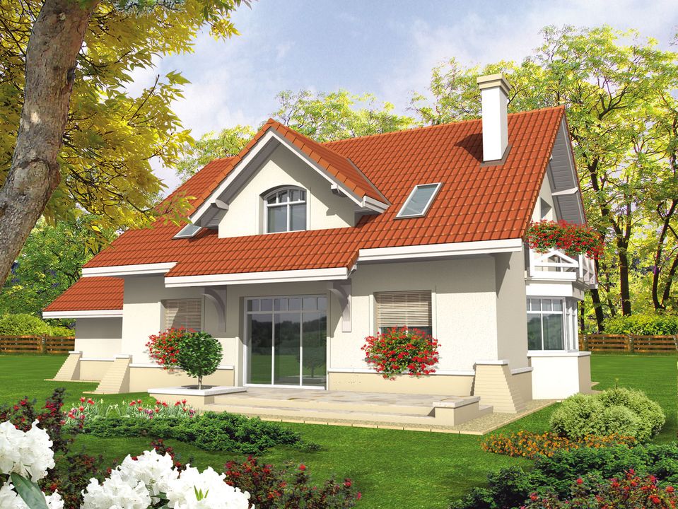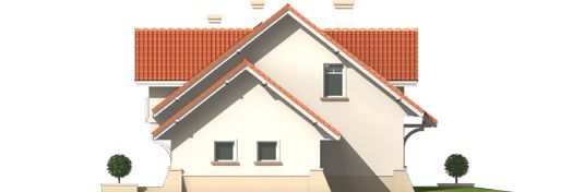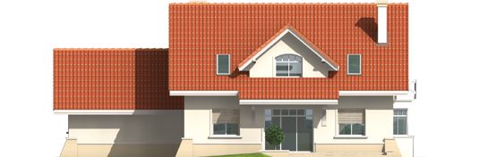 Graficzne opracowanie rzutów poglądowych widocznych na karcie projektu zostało wykonane przez Extradom.pl. Prezentowane przez Extradom.pl wizualizacje wykonane zostały przez autora projektu i należy poczytywać je jedynie za przykład i propozycję wykończenia, wizję architektoniczną autora projektu. Ostateczne wykończenie budynku może nastąpić na wiele sposobów. Szczegółowe rozwiązania zastosowane w oferowanej dokumentacji - w tym również ilość, lokalizacje i wygląd okien, drzwi, kominów - mogą w niewielkim stopniu różnić się od prezentowanej wizualizacji budynku.
