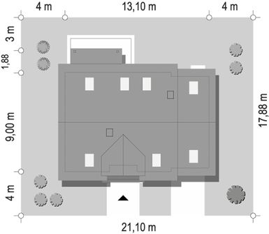 Graficzne opracowanie rzutów poglądowych widocznych na karcie projektu zostało wykonane przez Extradom.pl. Prezentowane przez Extradom.pl wizualizacje wykonane zostały przez autora projektu i należy poczytywać je jedynie za przykład i propozycję wykończenia, wizję architektoniczną autora projektu. Ostateczne wykończenie budynku może nastąpić na wiele sposobów. Szczegółowe rozwiązania zastosowane w oferowanej dokumentacji - w tym również ilość, lokalizacje i wygląd okien, drzwi, kominów - mogą w niewielkim stopniu różnić się od prezentowanej wizualizacji budynku.