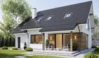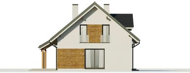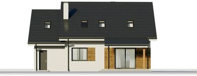 Graficzne opracowanie rzutów poglądowych widocznych na karcie projektu zostało wykonane przez Extradom.pl. Prezentowane przez Extradom.pl wizualizacje wykonane zostały przez autora projektu i należy poczytywać je jedynie za przykład i propozycję wykończenia, wizję architektoniczną autora projektu. Ostateczne wykończenie budynku może nastąpić na wiele sposobów. Szczegółowe rozwiązania zastosowane w oferowanej dokumentacji - w tym również ilość, lokalizacje i wygląd okien, drzwi, kominów - mogą w niewielkim stopniu różnić się od prezentowanej wizualizacji budynku.