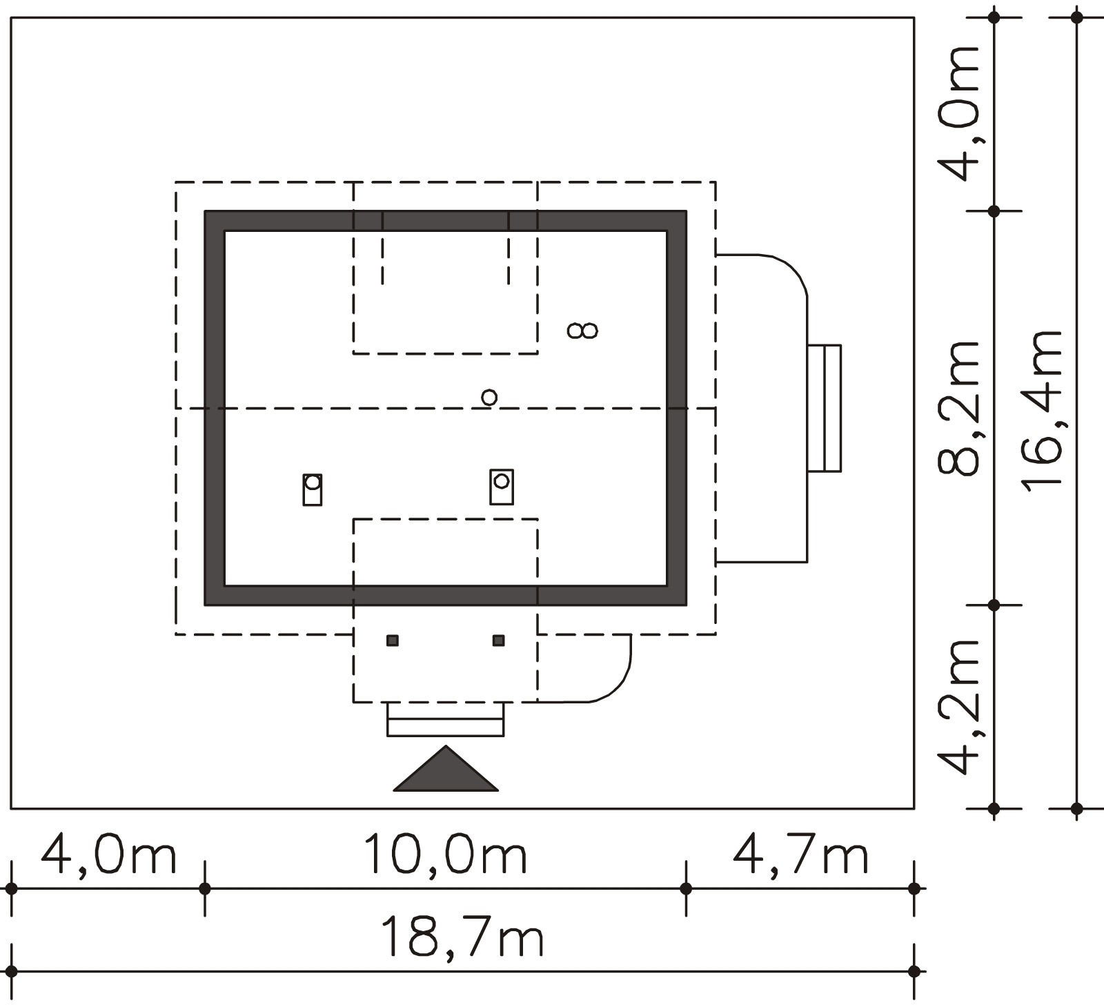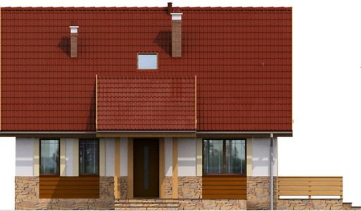 Graficzne opracowanie rzutów poglądowych widocznych na karcie projektu zostało wykonane przez Extradom.pl. Prezentowane przez Extradom.pl wizualizacje wykonane zostały przez autora projektu i należy poczytywać je jedynie za przykład i propozycję wykończenia, wizję architektoniczną autora projektu. Ostateczne wykończenie budynku może nastąpić na wiele sposobów. Szczegółowe rozwiązania zastosowane w oferowanej dokumentacji - w tym również ilość, lokalizacje i wygląd okien, drzwi, kominów - mogą w niewielkim stopniu różnić się od prezentowanej wizualizacji budynku.
