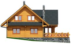 Posadowienie budynku: ława fundamentowa; Ściany zewnętrzne: z bali (12cm) + szkieletowa z wełną izolacyjną 20cm; Ściany wewnętrzne: parter: bale drewniane (12cm) ; piętro: konstrukcja szkieletowa 8cm; Strop nad parterem: drewniany; Konstrukcja dachu: drewniana, krokwiowo-jętkowa; Pokrycie dachu: dachówka lub blachodachówka; Elewacja: bale drewniane (12cm);
