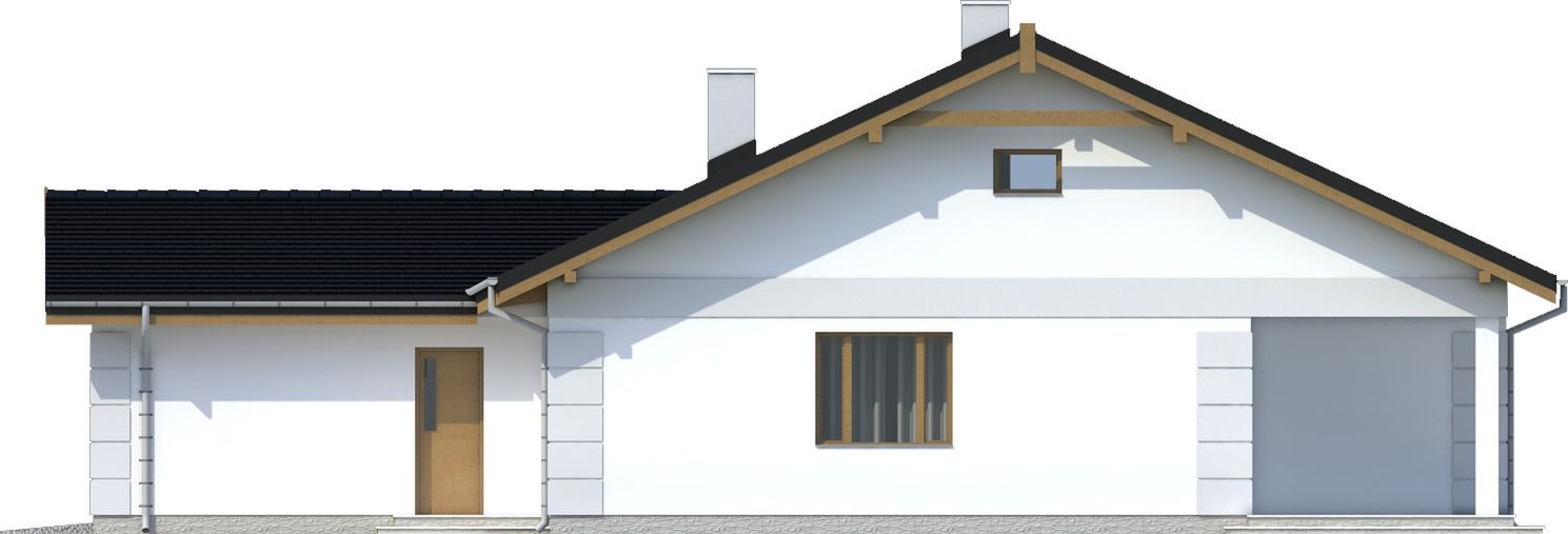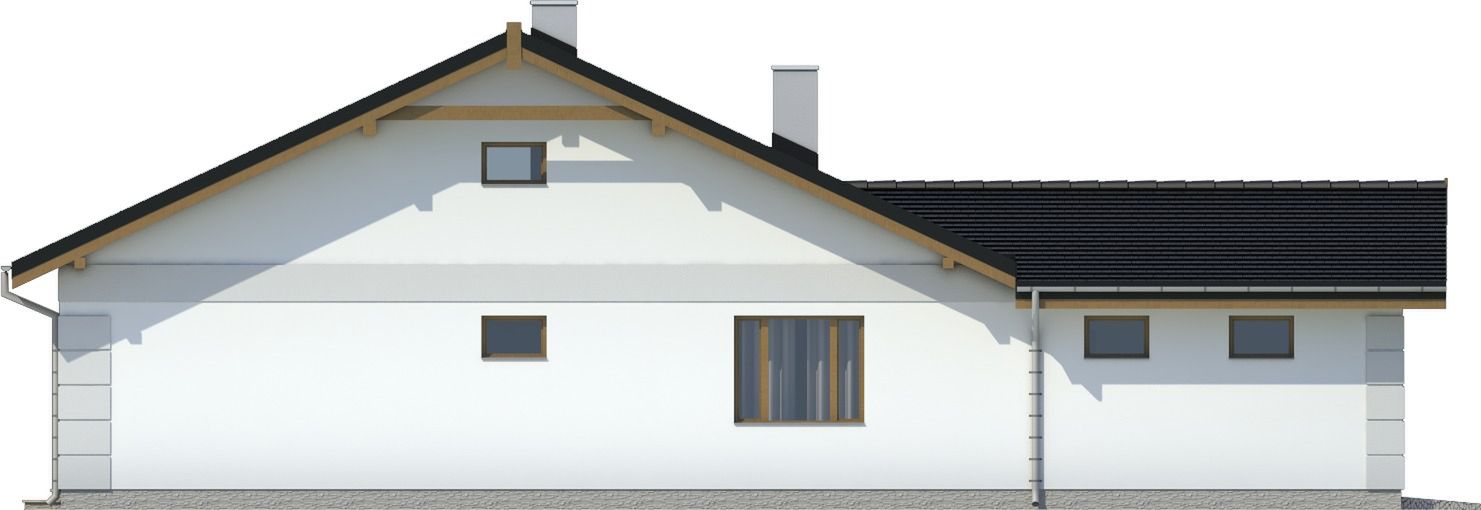 Graficzne opracowanie rzutów poglądowych widocznych na karcie projektu zostało wykonane przez Extradom.pl. Prezentowane przez Extradom.pl wizualizacje wykonane zostały przez autora projektu i należy poczytywać je jedynie za przykład i propozycję wykończenia, wizję architektoniczną autora projektu. Ostateczne wykończenie budynku może nastąpić na wiele sposobów. Szczegółowe rozwiązania zastosowane w oferowanej dokumentacji - w tym również ilość, lokalizacje i wygląd okien, drzwi, kominów - mogą w niewielkim stopniu różnić się od prezentowanej wizualizacji budynku.