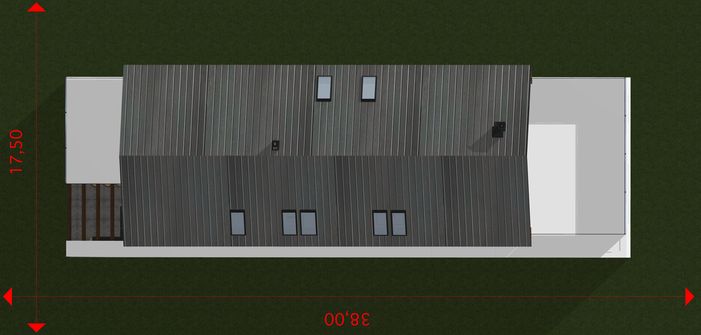 Graficzne opracowanie rzutów poglądowych widocznych na karcie projektu zostało wykonane przez Extradom.pl. Prezentowane przez Extradom.pl wizualizacje wykonane zostały przez autora projektu i należy poczytywać je jedynie za przykład i propozycję wykończenia, wizję architektoniczną autora projektu. Ostateczne wykończenie budynku może nastąpić na wiele sposobów. Szczegółowe rozwiązania zastosowane w oferowanej dokumentacji - w tym również ilość, lokalizacje i wygląd okien, drzwi, kominów - mogą w niewielkim stopniu różnić się od prezentowanej wizualizacji budynku.