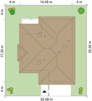 Graficzne opracowanie rzutów poglądowych widocznych na karcie projektu zostało wykonane przez Extradom.pl. Prezentowane przez Extradom.pl wizualizacje wykonane zostały przez autora projektu i należy poczytywać je jedynie za przykład i propozycję wykończenia, wizję architektoniczną autora projektu. Ostateczne wykończenie budynku może nastąpić na wiele sposobów. Szczegółowe rozwiązania zastosowane w oferowanej dokumentacji - w tym również ilość, lokalizacje i wygląd okien, drzwi, kominów - mogą w niewielkim stopniu różnić się od prezentowanej wizualizacji budynku.