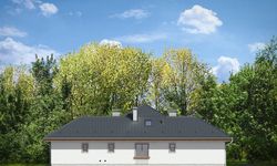 Graficzne opracowanie rzutów poglądowych widocznych na karcie projektu zostało wykonane przez Extradom.pl. Prezentowane przez Extradom.pl wizualizacje wykonane zostały przez autora projektu i należy poczytywać je jedynie za przykład i propozycję wykończenia, wizję architektoniczną autora projektu. Ostateczne wykończenie budynku może nastąpić na wiele sposobów. Szczegółowe rozwiązania zastosowane w oferowanej dokumentacji - w tym również ilość, lokalizacje i wygląd okien, drzwi, kominów - mogą w niewielkim stopniu różnić się od prezentowanej wizualizacji budynku.