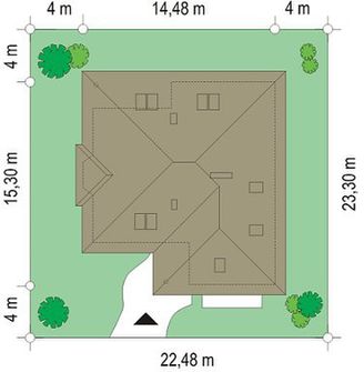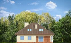 Graficzne opracowanie rzutów poglądowych widocznych na karcie projektu zostało wykonane przez Extradom.pl. Prezentowane przez Extradom.pl wizualizacje wykonane zostały przez autora projektu i należy poczytywać je jedynie za przykład i propozycję wykończenia, wizję architektoniczną autora projektu. Ostateczne wykończenie budynku może nastąpić na wiele sposobów. Szczegółowe rozwiązania zastosowane w oferowanej dokumentacji - w tym również ilość, lokalizacje i wygląd okien, drzwi, kominów - mogą w niewielkim stopniu różnić się od prezentowanej wizualizacji budynku.