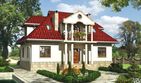 Graficzne opracowanie rzutów poglądowych widocznych na karcie projektu zostało wykonane przez Extradom.pl. Prezentowane przez Extradom.pl wizualizacje wykonane zostały przez autora projektu i należy poczytywać je jedynie za przykład i propozycję wykończenia, wizję architektoniczną autora projektu. Ostateczne wykończenie budynku może nastąpić na wiele sposobów. Szczegółowe rozwiązania zastosowane w oferowanej dokumentacji - w tym również ilość, lokalizacje i wygląd okien, drzwi, kominów - mogą w niewielkim stopniu różnić się od prezentowanej wizualizacji budynku.