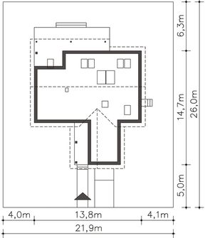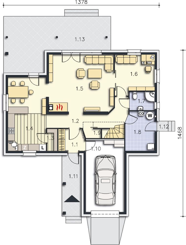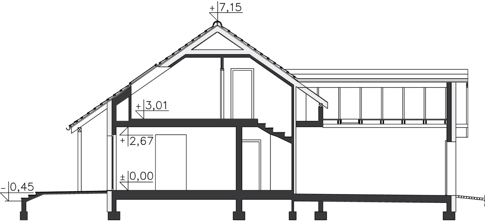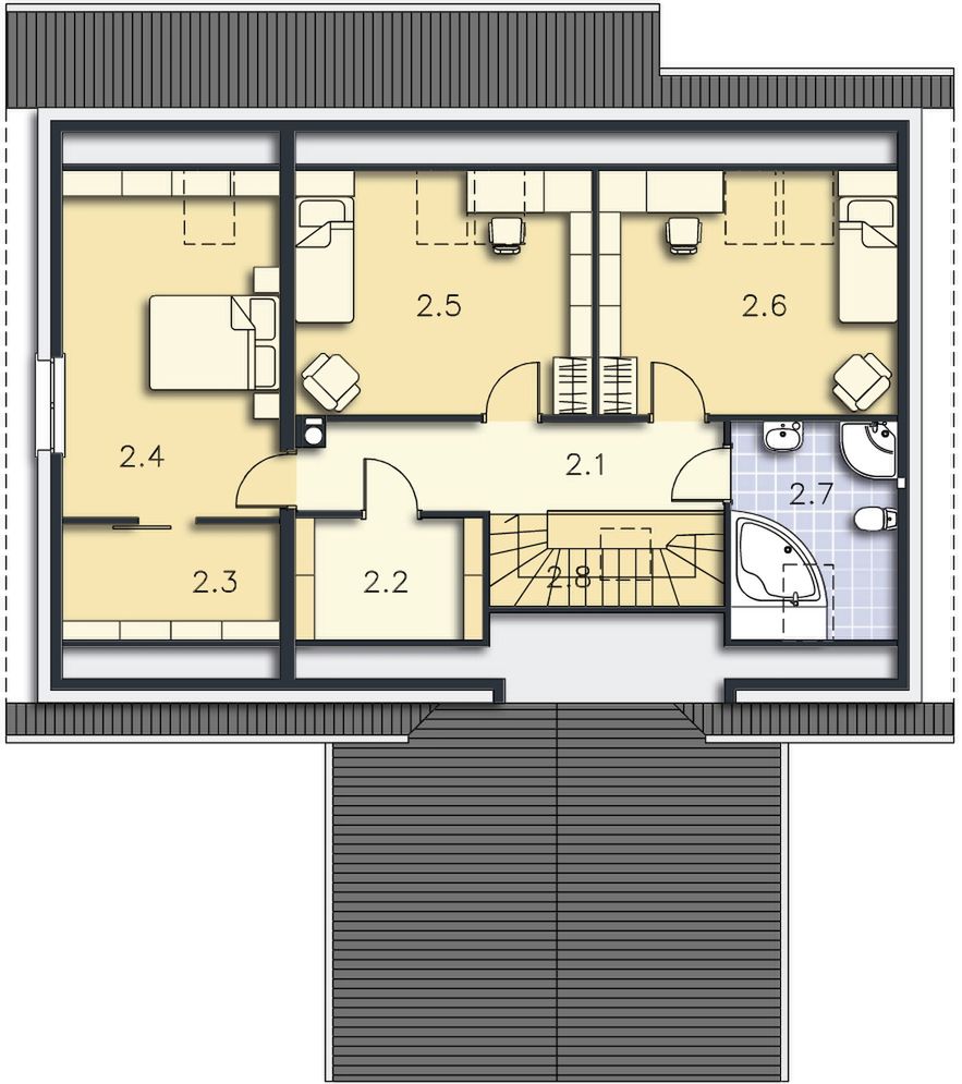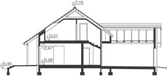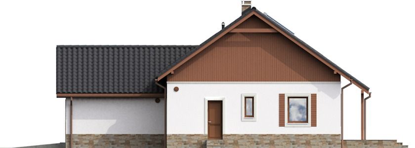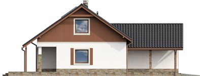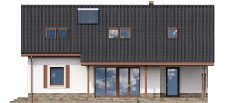 Graficzne opracowanie rzutów poglądowych widocznych na karcie projektu zostało wykonane przez Extradom.pl. Prezentowane przez Extradom.pl wizualizacje wykonane zostały przez autora projektu i należy poczytywać je jedynie za przykład i propozycję wykończenia, wizję architektoniczną autora projektu. Ostateczne wykończenie budynku może nastąpić na wiele sposobów. Szczegółowe rozwiązania zastosowane w oferowanej dokumentacji - w tym również ilość, lokalizacje i wygląd okien, drzwi, kominów - mogą w niewielkim stopniu różnić się od prezentowanej wizualizacji budynku.