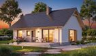 Graficzne opracowanie rzutów poglądowych widocznych na karcie projektu zostało wykonane przez Extradom.pl. Prezentowane przez Extradom.pl wizualizacje wykonane zostały przez autora projektu i należy poczytywać je jedynie za przykład i propozycję wykończenia, wizję architektoniczną autora projektu. Ostateczne wykończenie budynku może nastąpić na wiele sposobów. Szczegółowe rozwiązania zastosowane w oferowanej dokumentacji - w tym również ilość, lokalizacje i wygląd okien, drzwi, kominów - mogą w niewielkim stopniu różnić się od prezentowanej wizualizacji budynku.