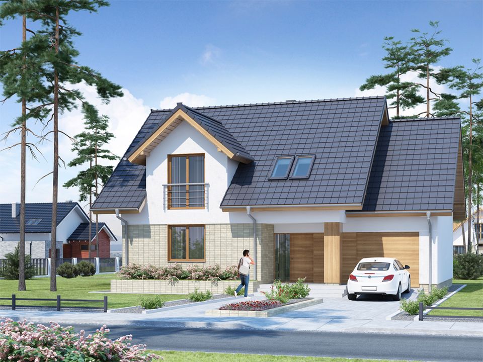 Zdecydowałem się na projekt domu parterowego z poddaszem użytkowym Nemezjusz WRW1171, ponieważ spełniał on wszystkie moje wymagania. Do wyboru projektu podszedłem bardzo praktycznie - głównie zwracałem uwagę na to, aby układ pomieszczeń był funkcjonalny. Zależało mi także na prostym i dwuspadowym dachu, a ponadto Nemezjusz przypadł mi do gustu również pod względem wizualnym. Właśnie takiego projektu domu szukałem.Podczas budowy nie mieliśmy żadnych problemów i wszystko przebiegło zgodnie z planem. Cała realizacja łącznie z wykonaniem wszelkich prac wykończeniowych zajęła nam 2 lata. Budynek został wymurowany z ceramicznych pustaków Wienerberger, a dach pokryliśmy ceramiczną dachówką antracytową tej samej marki. Ściany z zewnątrz ociepliliśmy 15 cm warstwą styropianu. Muszę jednak przyznać, iż chcąc zrealizować ten projekt przy użyciu takich materiałów, należy liczyć się z większymi kosztami, niż te, które oszacował architekt.Obecnie jesteśmy w trakcie pierwszego sezonu grzewczego od zamieszkania w nowym domu i na chwilę obecną nie jestem w stanie ocenić faktycznych kosztów jego eksploatacji. Co prawda, w zeszłym roku instalacja CO była włączona, jednak trwały wówczas prace wykończeniowe. Rozliczeniowy rachunek za gaz wyszedł dość spory, gdyż niedługo przed włączeniem pieca wylaliśmy wylewki i kładliśmy tynki - wszystko było mokre i musiało dobrze wyschnąć. Myślę wiec, że w tym roku koszty zużycia gazu będą już niższe.Do projektu Nemezjusz WRW1171 wprowadziliśmy jedynie drobne zmiany. W poprzednim mieszkaniu posiadaliśmy kominek, jednak korzystaliśmy z niego bardzo rzadko, dlatego w nowym domu zrezygnowaliśmy z tego elementu. Z tego względu nie wykonywaliśmy także komina w salonie. Dodatkowo, w garażu oraz w pomieszczeniu nad nim wstawiliśmy po jednym, niedużym oknie.Powierzchnia nad poddaszem okazała się bardzo duża, dlatego szkoda było jej nie wykorzystać. Przestrzeń tą zaadaptowaliśmy na praktyczny strych - mamy w nim naprawdę sporo miejsca do przechowywania rzeczy, z których nie korzystamy na co dzień. Dodatkowo nie mamy trudności z użytkowaniem tego pomieszczenia - przy wzroście 180 cm bez problemu mogę stanąć na środku w pozycji wyprostowanej.Jedyny mankament projektu, który widzę obecnie to schody, które ostatecznie są zbyt strome. Co prawda, nie jest to dla nas ogromny kłopot, aczkolwiek mogłyby być nieco wygodniejsze. Niestety, ich lokalizacja nie bardzo pozwala na modyfikacje - aby klatka schodowa była bardziej praktyczna, musiałaby być dłuższa, a wtedy nachodziłaby na salon. Schody zostały zminimalizowane kosztem pokoi, które natomiast są duże, ustwane i bardzo wygodne.W nowym domu mieszkam z żoną oraz dwójką naszych dzieci i żyje nam się naprawdę komfortowo. Wcześniej mieliśmy 3-pokojowe mieszkanie w bloku o metrażu 60 m², więc obecnie wygoda mieszkania w domu o powierzchnia ok. 160 m² jest nieporównywalna. Wybór projektu Nemezjusz WRW1171 okazał się dla nas doskonałą decyzją. Układ pomieszczeń został świetnie przemyślany i nie mam do niego żadnych zastrzeżeń. Ogromną zaletą jest również dwuspadowy dach. Mimo, iż nie wygląda on tak okazale jak czterospadowy, to pod względem praktycznym posiada olbrzymią przewagę. Moi rodzice mieszkają w domu z dachem o 4-spadowej konstrukcji - pomimo, że powierzchnia górnej kondygnacji liczona „po podłodze” jest duża, to przez liczne skosy pokoje są nieustawne i wciąż trzeba uważać, aby nie uderzyć się w głowę. Nasze sypialnie wyszły natomiast przepięknie - są wygodne i praktyczne, a przebywając w nich praktycznie nie ma się odczucia, że jest to poddasze. Śmiało mogę polecić ten projekt innym inwestorom. Pozdrawiam.