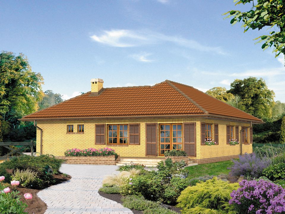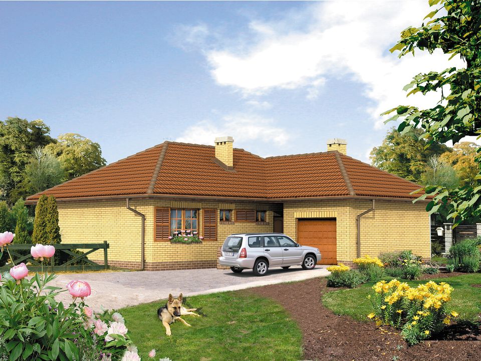 Graficzne opracowanie rzutów poglądowych widocznych na karcie projektu zostało wykonane przez Extradom.pl. Prezentowane przez Extradom.pl wizualizacje wykonane zostały przez autora projektu i należy poczytywać je jedynie za przykład i propozycję wykończenia, wizję architektoniczną autora projektu. Ostateczne wykończenie budynku może nastąpić na wiele sposobów. Szczegółowe rozwiązania zastosowane w oferowanej dokumentacji - w tym również ilość, lokalizacje i wygląd okien, drzwi, kominów - mogą w niewielkim stopniu różnić się od prezentowanej wizualizacji budynku.