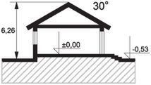 Dach: gont bitumiczny, kąt nachylenia 30°. Stropy: żelbetowe, wylewane. Ściany: 3-warstwowe - pustak ceramiczny. Ogrzewanie: gazowe.