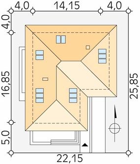 Graficzne opracowanie rzutów poglądowych widocznych na karcie projektu zostało wykonane przez Extradom.pl. Prezentowane przez Extradom.pl wizualizacje wykonane zostały przez autora projektu i należy poczytywać je jedynie za przykład i propozycję wykończenia, wizję architektoniczną autora projektu. Ostateczne wykończenie budynku może nastąpić na wiele sposobów. Szczegółowe rozwiązania zastosowane w oferowanej dokumentacji - w tym również ilość, lokalizacje i wygląd okien, drzwi, kominów - mogą w niewielkim stopniu różnić się od prezentowanej wizualizacji budynku.