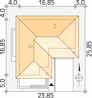 Graficzne opracowanie rzutów poglądowych widocznych na karcie projektu zostało wykonane przez Extradom.pl. Prezentowane przez Extradom.pl wizualizacje wykonane zostały przez autora projektu i należy poczytywać je jedynie za przykład i propozycję wykończenia, wizję architektoniczną autora projektu. Ostateczne wykończenie budynku może nastąpić na wiele sposobów. Szczegółowe rozwiązania zastosowane w oferowanej dokumentacji - w tym również ilość, lokalizacje i wygląd okien, drzwi, kominów - mogą w niewielkim stopniu różnić się od prezentowanej wizualizacji budynku.