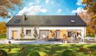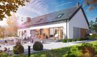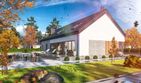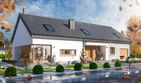 Graficzne opracowanie rzutów poglądowych widocznych na karcie projektu zostało wykonane przez Extradom.pl. Prezentowane przez Extradom.pl wizualizacje wykonane zostały przez autora projektu i należy poczytywać je jedynie za przykład i propozycję wykończenia, wizję architektoniczną autora projektu. Ostateczne wykończenie budynku może nastąpić na wiele sposobów. Szczegółowe rozwiązania zastosowane w oferowanej dokumentacji - w tym również ilość, lokalizacje i wygląd okien, drzwi, kominów - mogą w niewielkim stopniu różnić się od prezentowanej wizualizacji budynku.