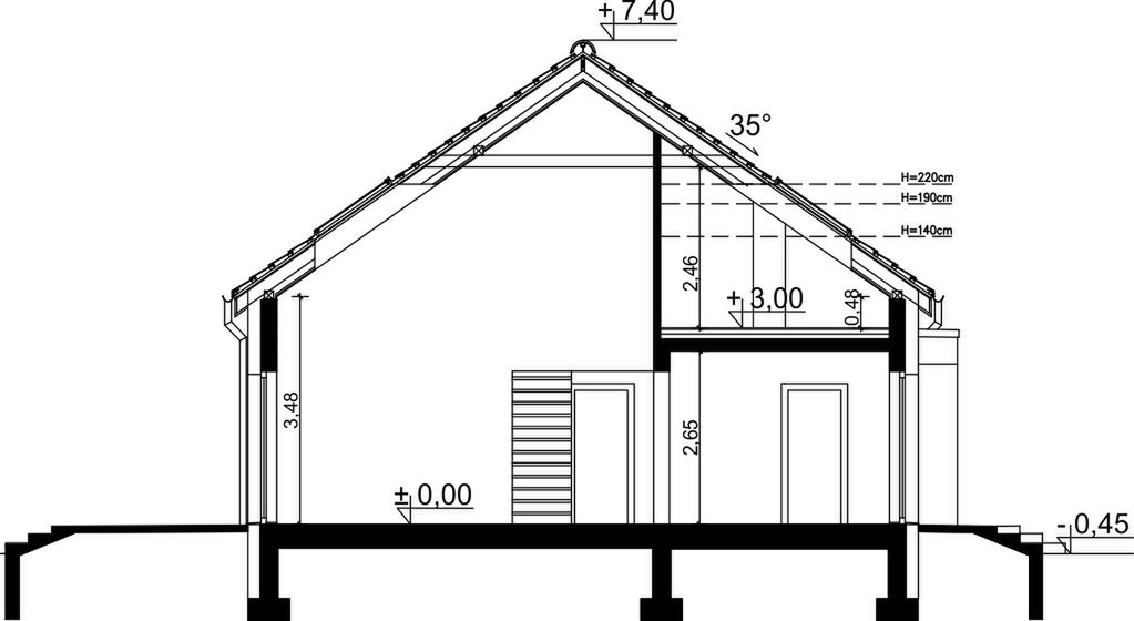 Budynek posadowiony został na fundamentach betonowych. Ściany zewnętrzne dwuwarstwowe z betonu komórkowego 24cm + 20cm styropianu. Ściany wewnętrzne z betonu komórkowego jak i z płyty gipsowo-kartonowej [na ruszcie]. Strop żelbetowy-wylewany. Więźba dachowa drewniana. Pokrycie dachu - dachówka ceramiczna lub cementowa. Ogrzewanie gazowe lub na paliwo stałe. Wentylacja grawitacyjna + jako alternatywa: wentylacja mechaniczna z rekuperacją.