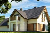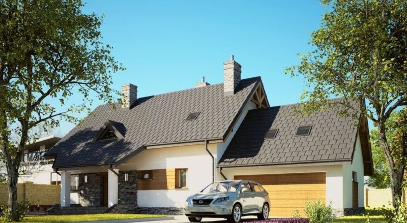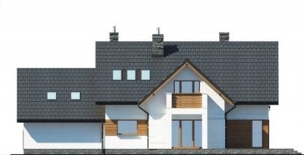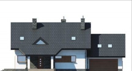 Graficzne opracowanie rzutów poglądowych widocznych na karcie projektu zostało wykonane przez Extradom.pl. Prezentowane przez Extradom.pl wizualizacje wykonane zostały przez autora projektu i należy poczytywać je jedynie za przykład i propozycję wykończenia, wizję architektoniczną autora projektu. Ostateczne wykończenie budynku może nastąpić na wiele sposobów. Szczegółowe rozwiązania zastosowane w oferowanej dokumentacji - w tym również ilość, lokalizacje i wygląd okien, drzwi, kominów - mogą w niewielkim stopniu różnić się od prezentowanej wizualizacji budynku.