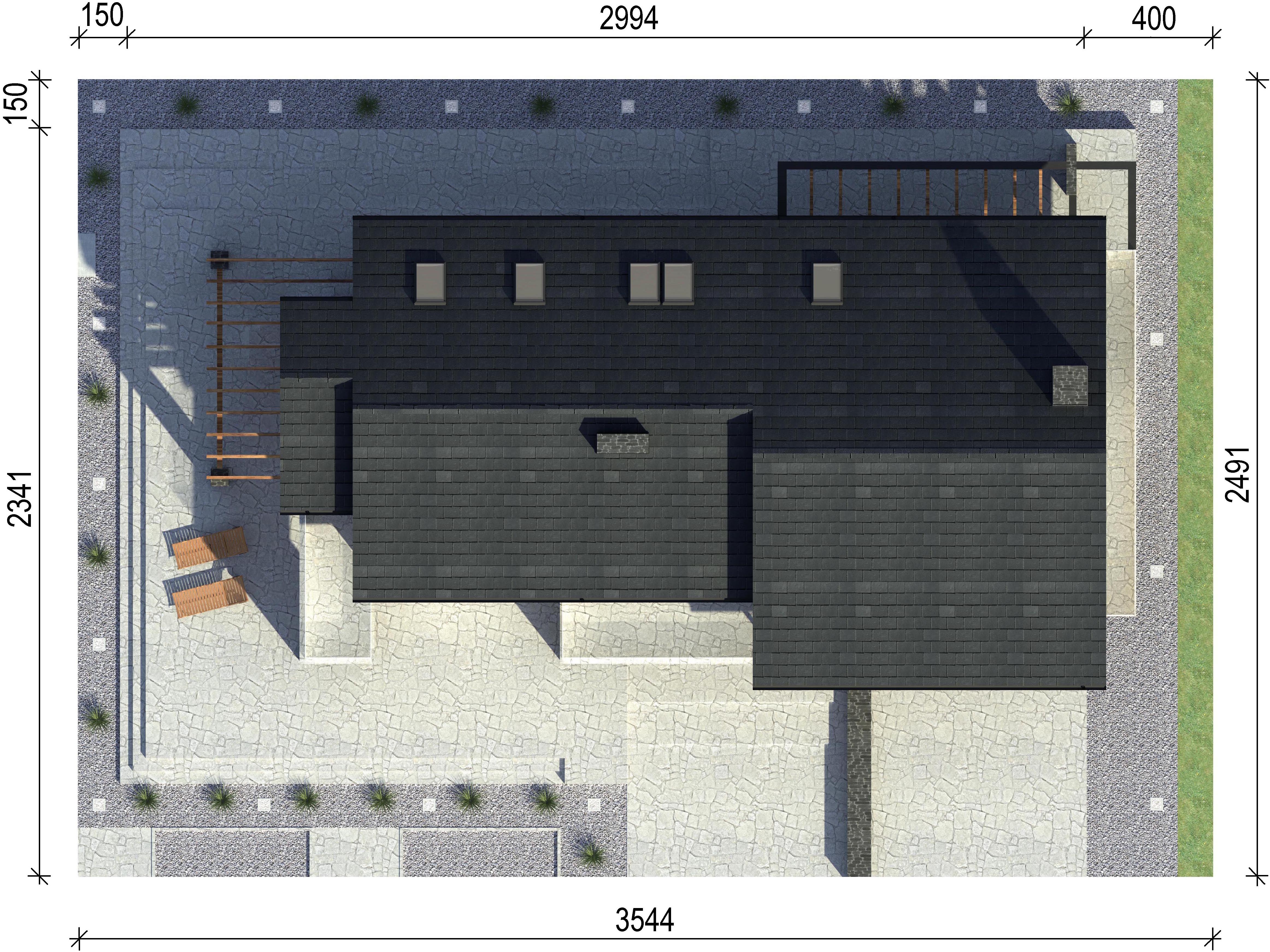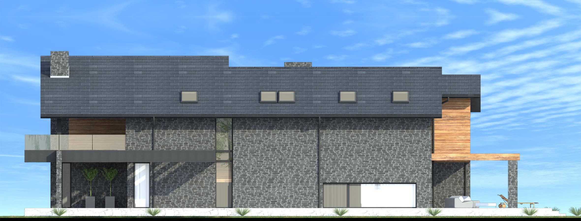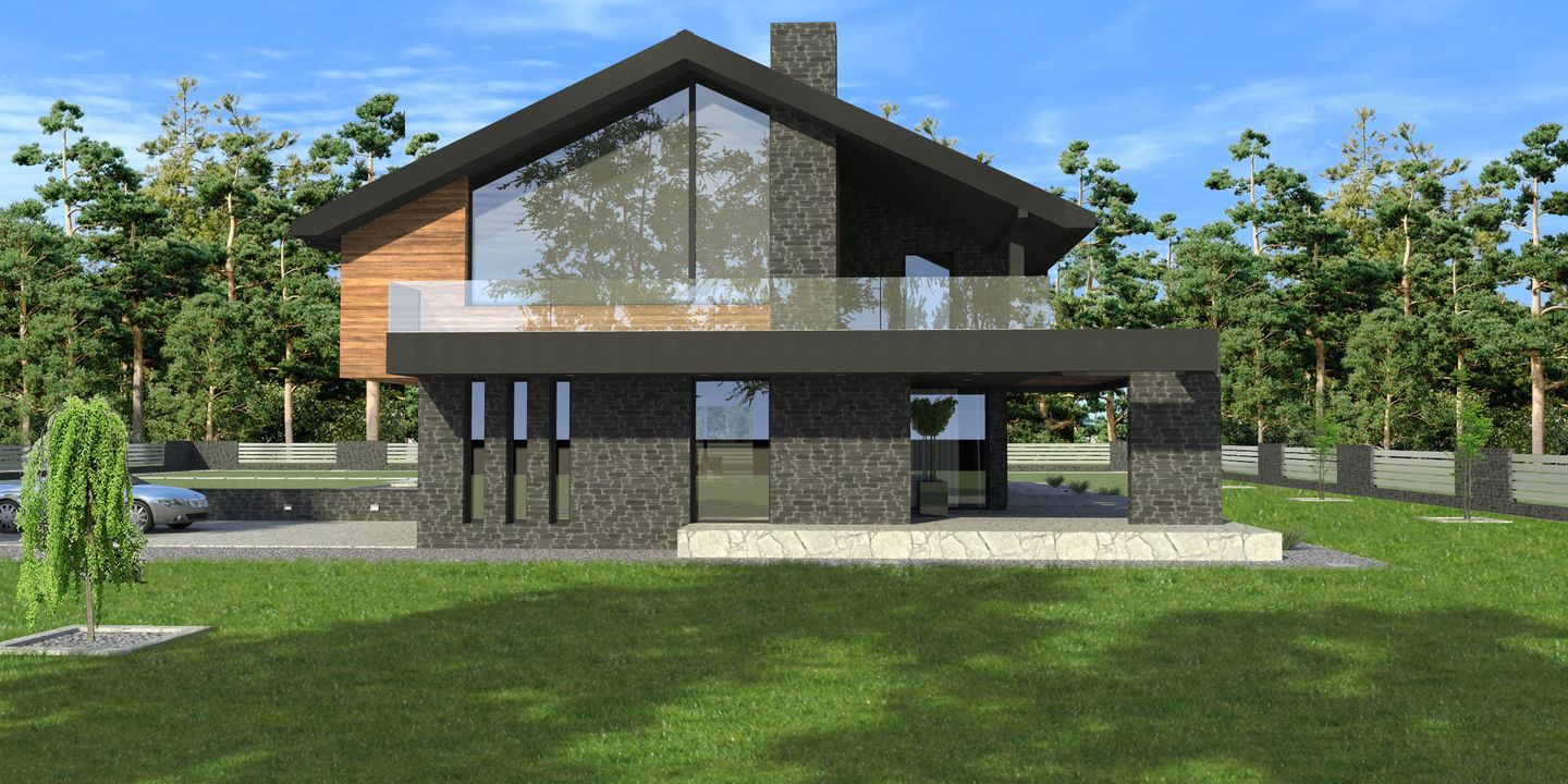 Graficzne opracowanie rzutów poglądowych widocznych na karcie projektu zostało wykonane przez Extradom.pl. Prezentowane przez Extradom.pl wizualizacje wykonane zostały przez autora projektu i należy poczytywać je jedynie za przykład i propozycję wykończenia, wizję architektoniczną autora projektu. Ostateczne wykończenie budynku może nastąpić na wiele sposobów. Szczegółowe rozwiązania zastosowane w oferowanej dokumentacji - w tym również ilość, lokalizacje i wygląd okien, drzwi, kominów - mogą w niewielkim stopniu różnić się od prezentowanej wizualizacji budynku.