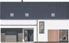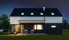 Graficzne opracowanie rzutów poglądowych widocznych na karcie projektu zostało wykonane przez Extradom.pl. Prezentowane przez Extradom.pl wizualizacje wykonane zostały przez autora projektu i należy poczytywać je jedynie za przykład i propozycję wykończenia, wizję architektoniczną autora projektu. Ostateczne wykończenie budynku może nastąpić na wiele sposobów. Szczegółowe rozwiązania zastosowane w oferowanej dokumentacji - w tym również ilość, lokalizacje i wygląd okien, drzwi, kominów - mogą w niewielkim stopniu różnić się od prezentowanej wizualizacji budynku.